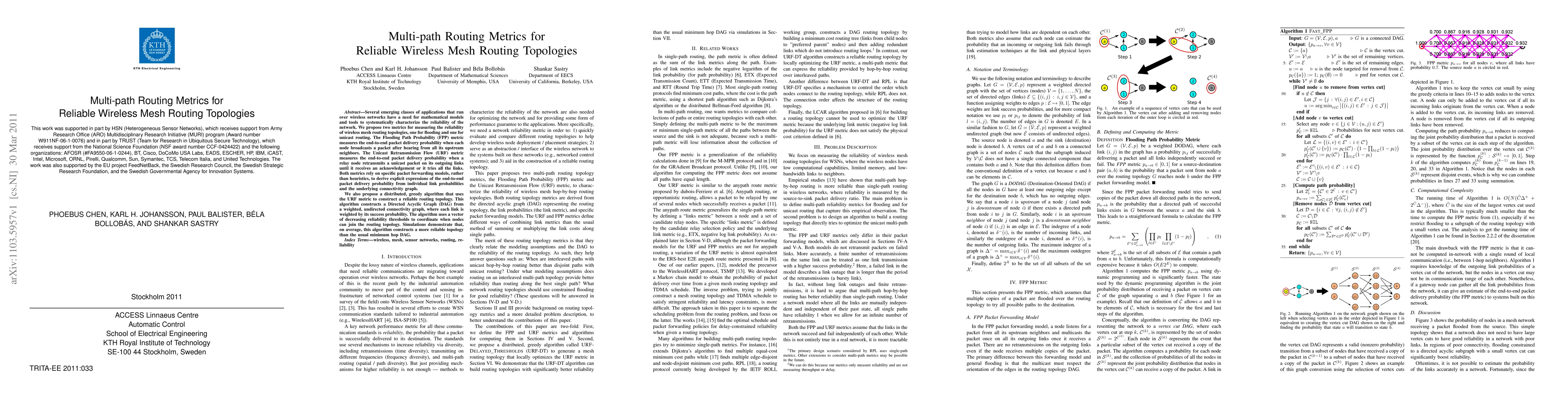 This paper proposes two reliability metrics for wireless mesh routing: Flooding Path Probability (FPP) for broadcast packets and Unicast Retransmission Flow (URF) for unicast packets. It also introduces a distributed algorithm using the URF metric to build a more reliable Directed Acyclic Graph (DAG) topology compared to traditional minimum hop methods.