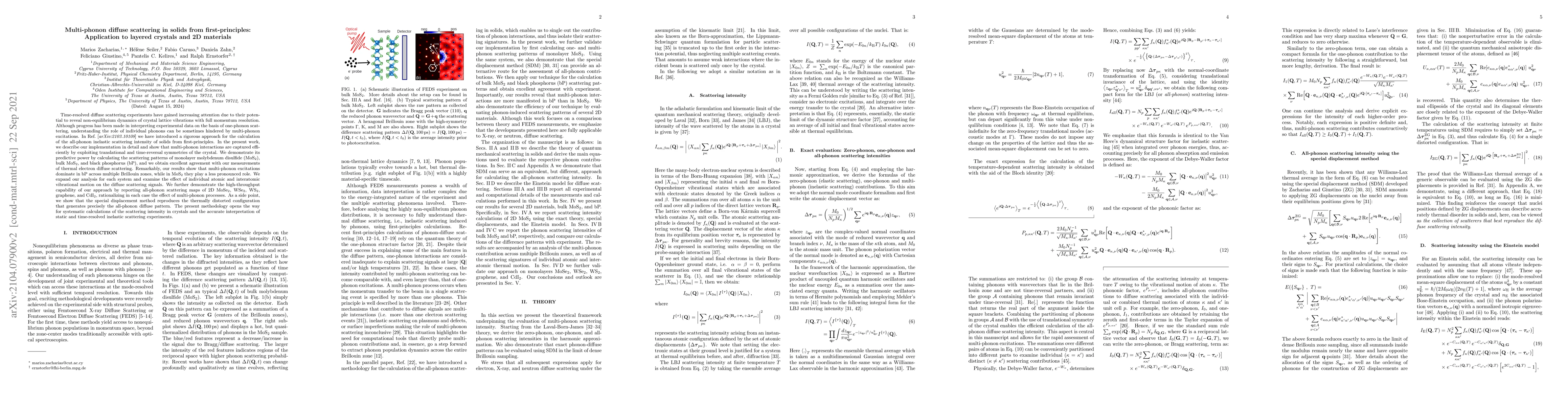 Time-resolved diffuse scattering experiments have gained increasing attention due to their potential to reveal non-equilibrium dynamics of crystal lattice vibrations with full momentum resolution. Although progress has been made in interpreting experimental data on the basis of one-phonon scattering, understanding the role of individual phonons can be sometimes hindered by multi-phonon excitations. In Ref. [{\it arXiv:2103.10108}] we have introduced a rigorous approach for the calculation of the all-phonon inelastic scattering intensity of solids from first-principles. In the present work, we describe our implementation in detail and show that multi-phonon interactions are captured efficiently by exploiting translational and time-reversal symmetries of the crystal. We demonstrate its predictive power by calculating the scattering patterns of monolayer molybdenum disulfide (MoS$_2$), bulk MoS$_2$, and black phosphorus (bP), and we obtain excellent agreement with our measurements of thermal electron diffuse scattering. Remarkably, our results show that multi-phonon excitations dominate in bP across multiple Brillouin zones, while in MoS$_2$ they play a less pronounced role. We expand our analysis for each system and examine the effect of individual atomic and interatomic vibrational motion on the diffuse scattering signals. We further demonstrate the high-throughput capability of our approach by reporting all-phonon scattering maps of 2D MoSe2, WSe2, WS2, graphene, and CdI2, rationalizing in each case the effect of multi-phonon processes. As a side point, we show that the special displacement method reproduces the thermally distorted configuration that generates precisely the all-phonon diffuse pattern.