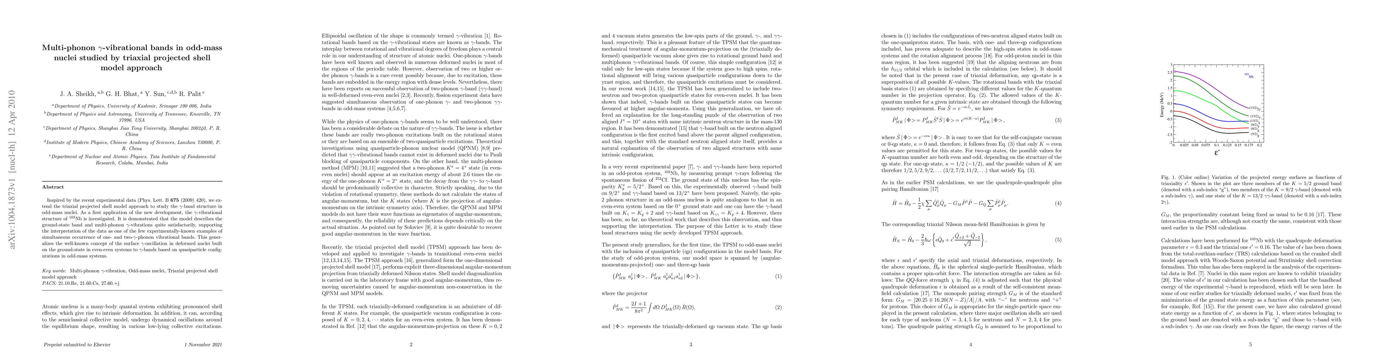 This paper extends the triaxial projected shell model to study $\gamma$-vibrational bands in odd-mass nuclei, specifically $^{103}$Nb, and successfully describes the ground-state band and multi-phonon $\gamma$-vibrations, supporting the interpretation of experimental data as an example of one- and two-$\gamma$-phonon vibrational bands.