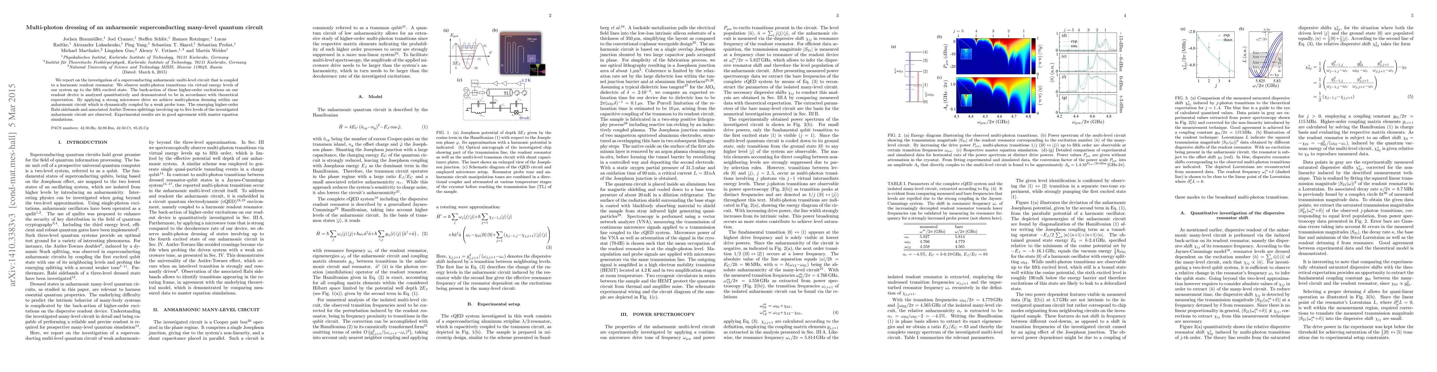 We report on the investigation of a superconducting anharmonic multi-level circuit that is coupled to a harmonic readout resonator. We observe multi-photon transitions via virtual energy levels of our system up to the fifth excited state. The back-action of these higher-order excitations on our readout device is analyzed quantitatively and demonstrated to be in accordance with theoretical expectation. By applying a strong microwave drive we achieve multi-photon dressing within our anharmonic circuit which is dynamically coupled by a weak probe tone. The emerging higher-order Rabi sidebands and associated Autler-Townes splittings involving up to five levels of the investigated anharmonic circuit are observed. Experimental results are in good agreement with master equation simulations.