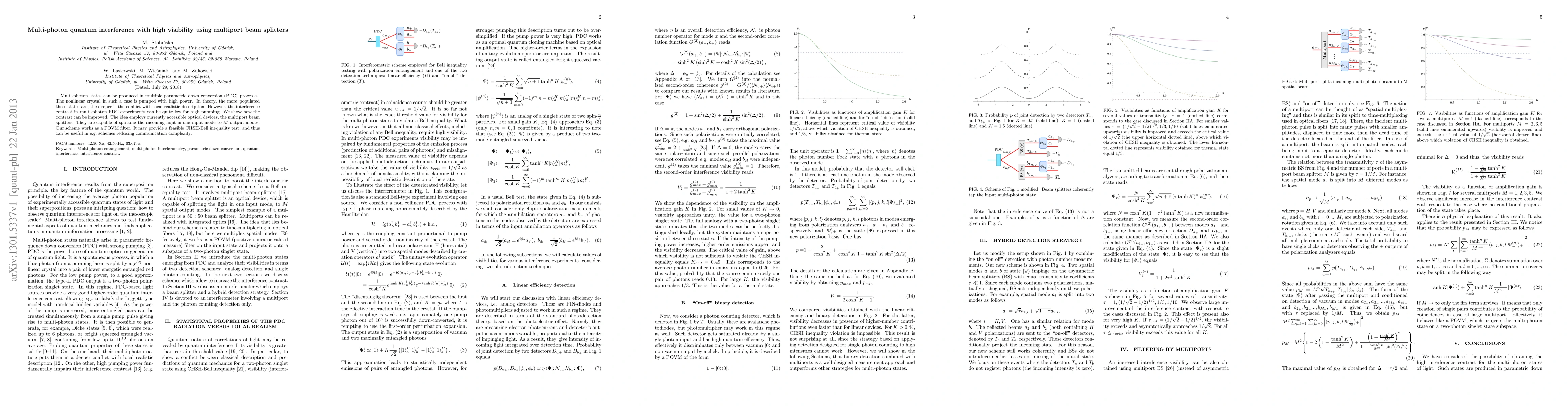 This paper presents a method to enhance multi-photon quantum interference contrast using multiport beam splitters, which split light into multiple output modes. This approach improves the visibility of interference, potentially enabling more effective CHSH-Bell inequality tests and applications in reducing communication complexity.