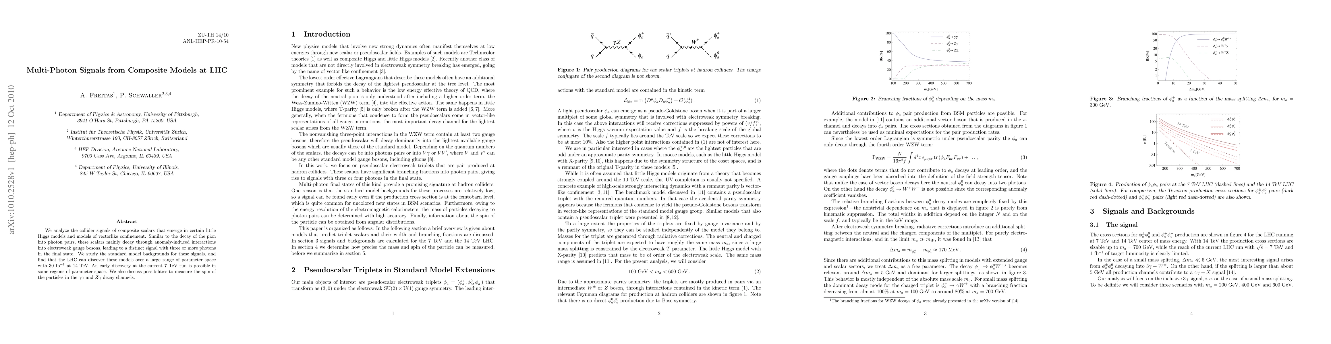 We analyze the collider signals of composite scalars that emerge in certain little Higgs models and models of vectorlike confinement. Similar to the decay of the pion into photon pairs, these scalars mainly decay through anomaly-induced interactions into electroweak gauge bosons, leading to a distinct signal with three or more photons in the final state. We study the standard model backgrounds for these signals, and find that the LHC can discover these models over a large range of parameter space with 30 fb$^{-1}$ at 14 TeV. An early discovery at the current 7 TeV run is possible in some regions of parameter space. We also discuss possibilities to measure the spin of the particles in the $\gamma \gamma $ and $Z\gamma $ decay channels.