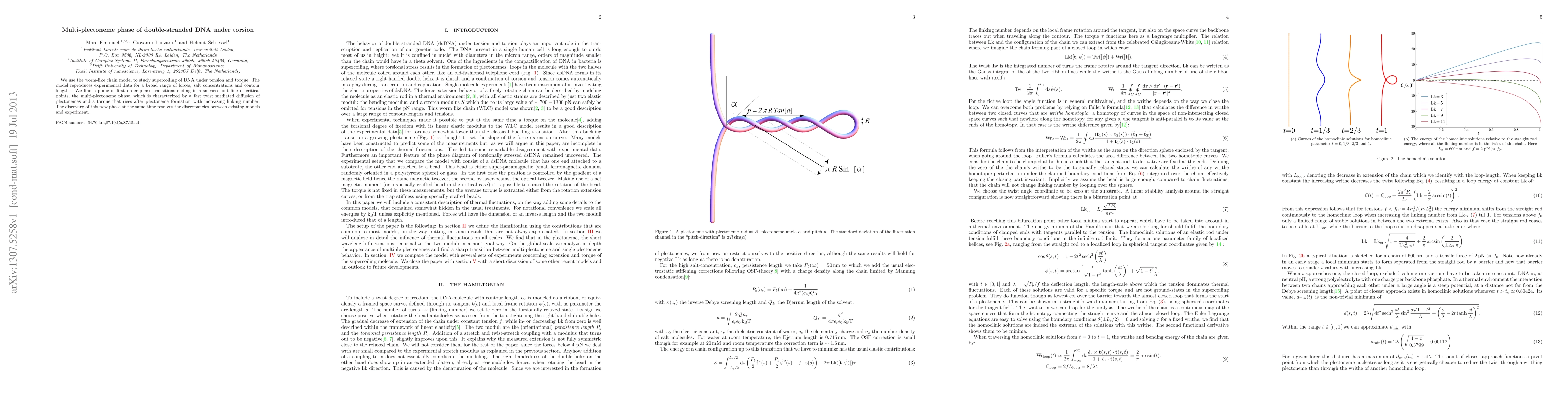 We use the worm-like chain model to study supercoiling of DNA under tension and torque. The model reproduces experimental data for a broad range of forces, salt concentrations and contour lengths. We find a plane of first order phase transitions ending in a smeared out line of critical points, the multi-plectoneme phase, which is characterized by a fast twist mediated diffusion of plectonemes and a torque that rises after plectoneme formation with increasing linking number. The discovery of this new phase at the same time resolves the discrepancies between existing models and experiment.