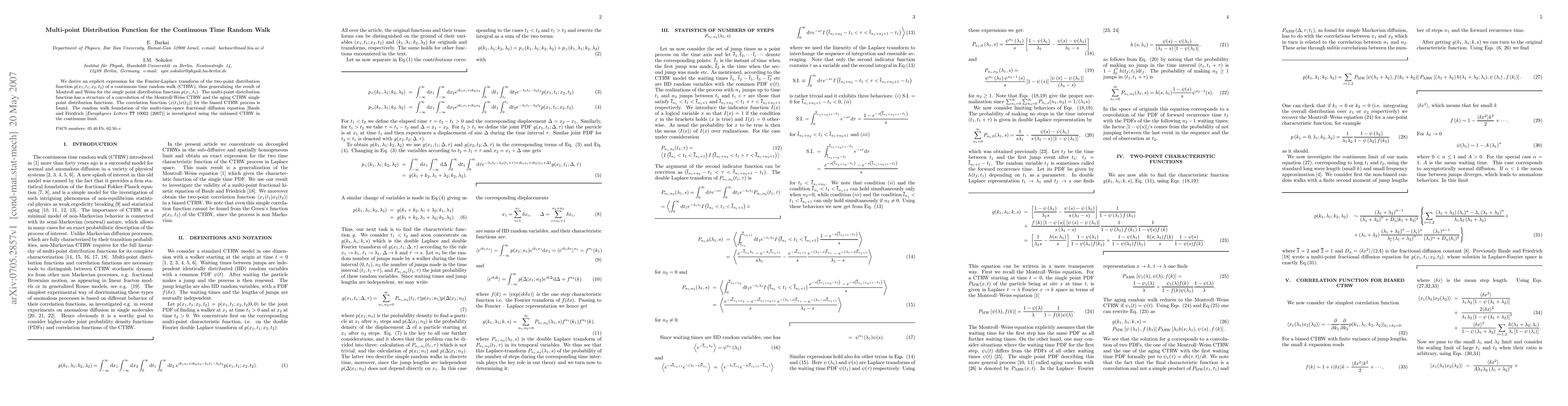 single point distribution function $p(x_1,t_1)$. The multi-point distribution