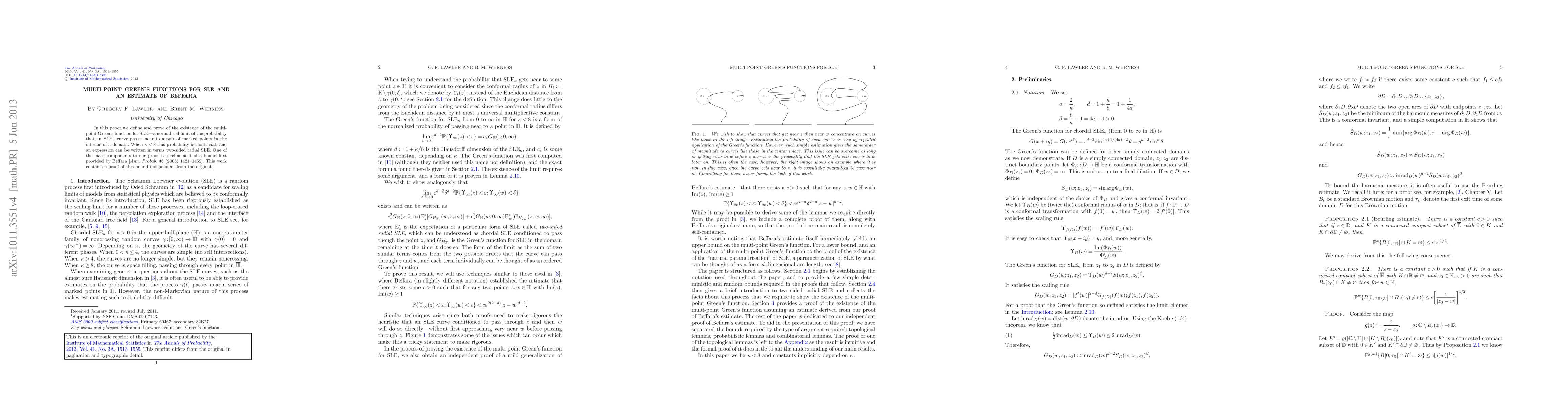 This paper establishes the existence of multi-point Green's functions for SLE, providing a normalized limit for the probability of an $SLE_{\kappa}$ curve passing near marked points. It also independently refines and proves a bound initially provided by Beffara.