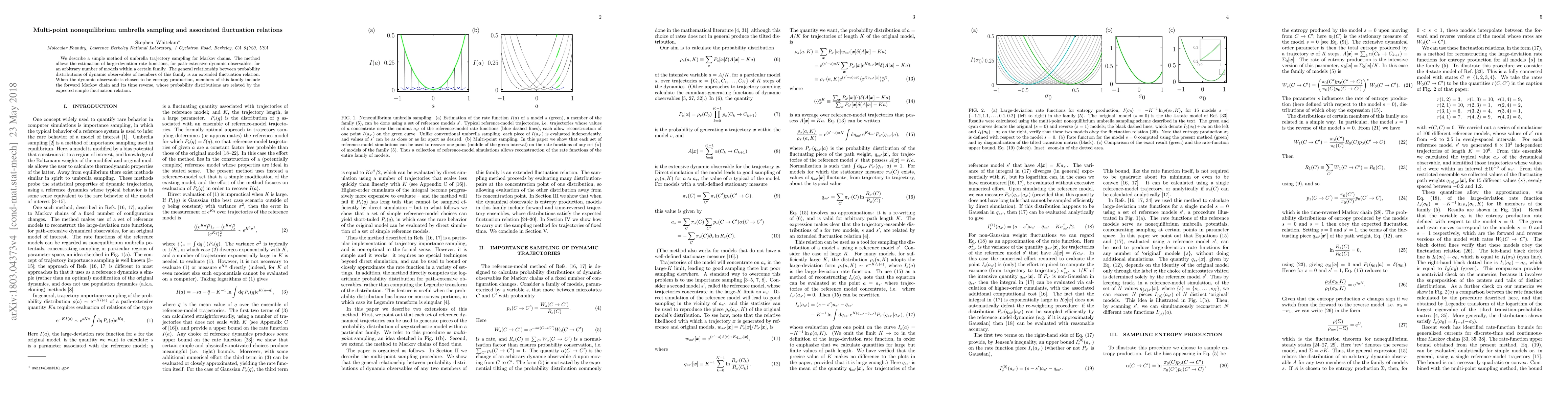 We describe a simple method of umbrella trajectory sampling for Markov chains. The method allows the estimation of large-deviation rate functions, for path-extensive dynamic observables, for an arbitrary number of models within a certain family. The general relationship between probability distributions of dynamic observables of members of this family is an extended fluctuation relation. When the dynamic observable is chosen to be entropy production, members of this family include the forward Markov chain and its time reverse, whose probability distributions are related by the expected simple fluctuation relation.