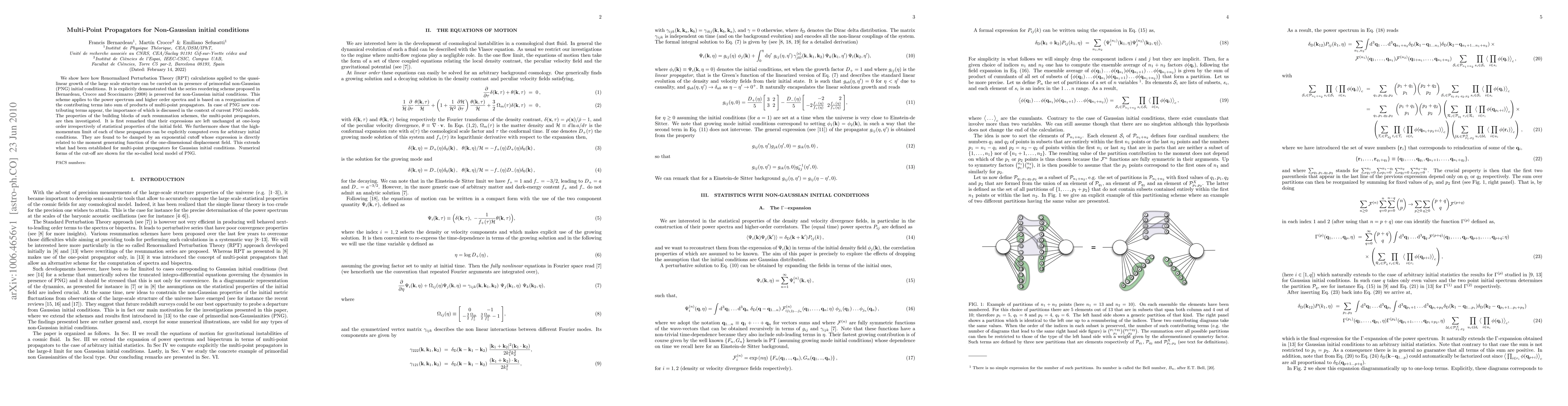 We show here how Renormalized Perturbation Theory (RPT) calculations applied to the quasi-linear growth of the large-scale structure can be carried on in presence of primordial non-Gaussian (PNG) initial conditions. It is explicitly demonstrated that the series reordering scheme proposed in Bernardeau, Crocce and Scoccimarro (2008) is preserved for non-Gaussian initial conditions. This scheme applies to the power spectrum and higher order spectra and is based on a reorganization of the contributing terms into sum of products of multi-point propagators. In case of PNG new contributing terms appear, the importance of which is discussed in the context of current PNG models. The properties of the building blocks of such resummation schemes, the multi-point propagators, are then investigated. It is first remarked that their expressions are left unchanged at one-loop order irrespectively of statistical properties of the initial field. We furthermore show that the high-momemtum limit of each of these propagators can be explicitly computed even for arbitrary initial conditions. They are found to be damped by an exponential cutoff whose expression is directly related to the moment generating function of the one-dimensional displacement field. This extends what had been established for multi-point propagators for Gaussian initial conditions. Numerical forms of the cut-off are shown for the so-called local model of PNG.
