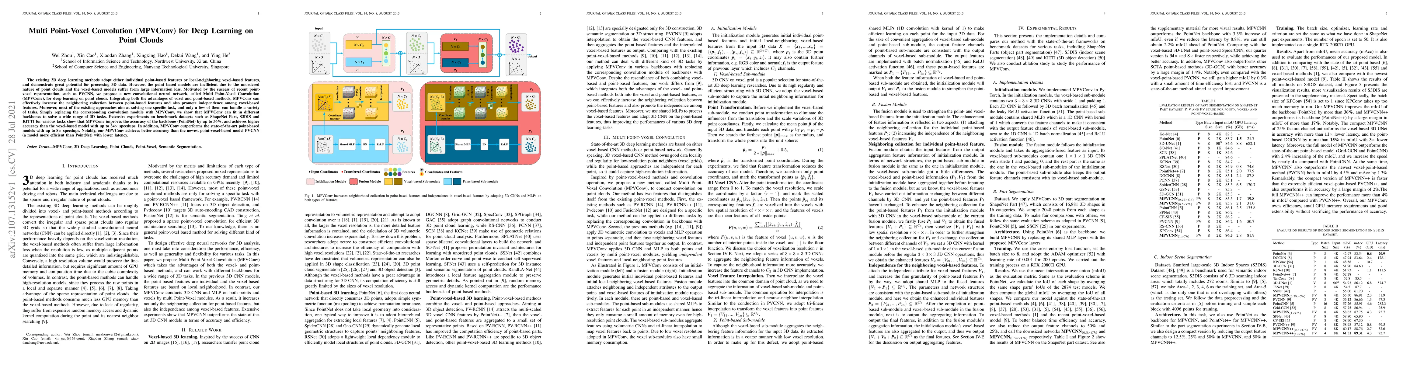 The paper proposes MPVConv, a convolutional neural network that integrates both point-based and voxel-based features for deep learning on point clouds, achieving higher accuracy and significant speedups compared to existing methods. Experiments on various datasets show MPVConv's effectiveness in a wide range of 3D tasks.