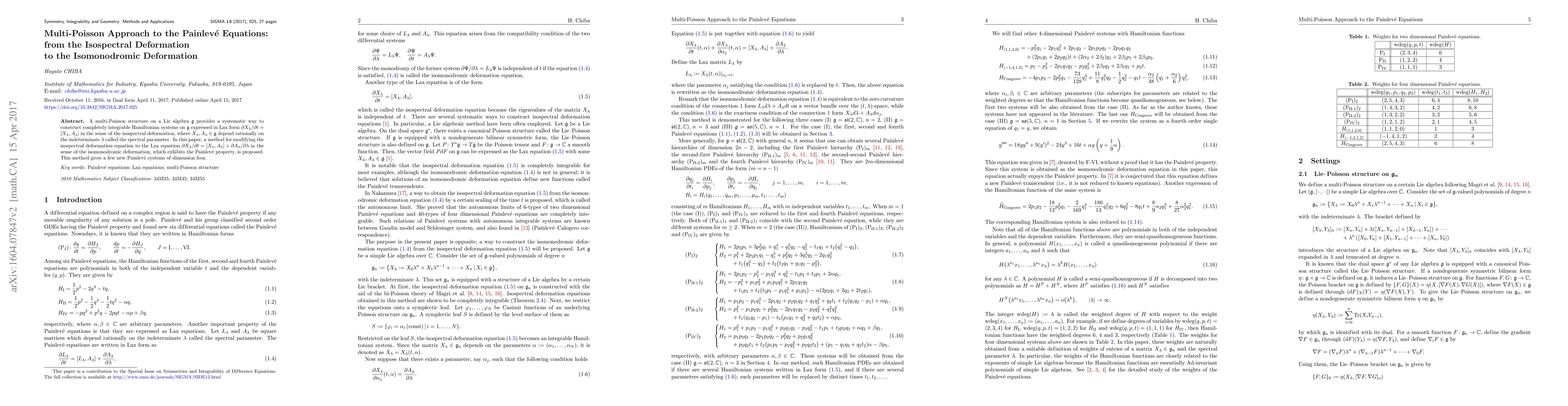 This paper proposes a method to transform isospectral deformation equations into isomonodromic deformation equations using a multi-Poisson structure on a Lie algebra, leading to new Painlevé systems of dimension four. The approach systematically constructs integrable Hamiltonian systems expressed in Lax form.