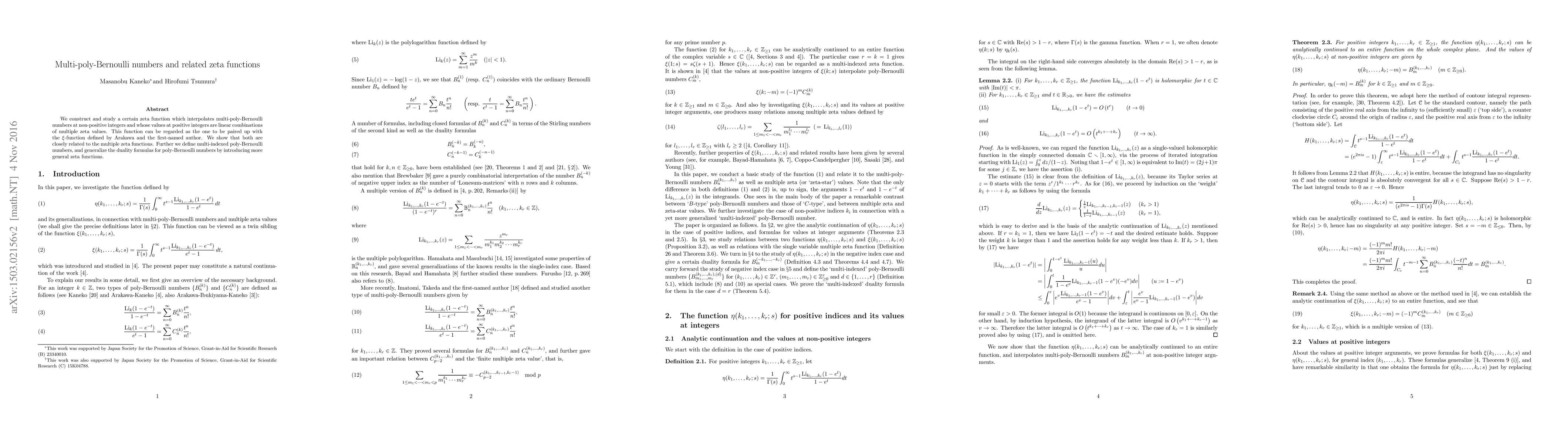 This paper constructs a zeta function interpolating multi-poly-Bernoulli numbers, showing its close relation to multiple zeta functions and defining multi-indexed poly-Bernoulli numbers to generalize duality formulas. The new zeta function is paired with the $\xi$-function for deeper connections.