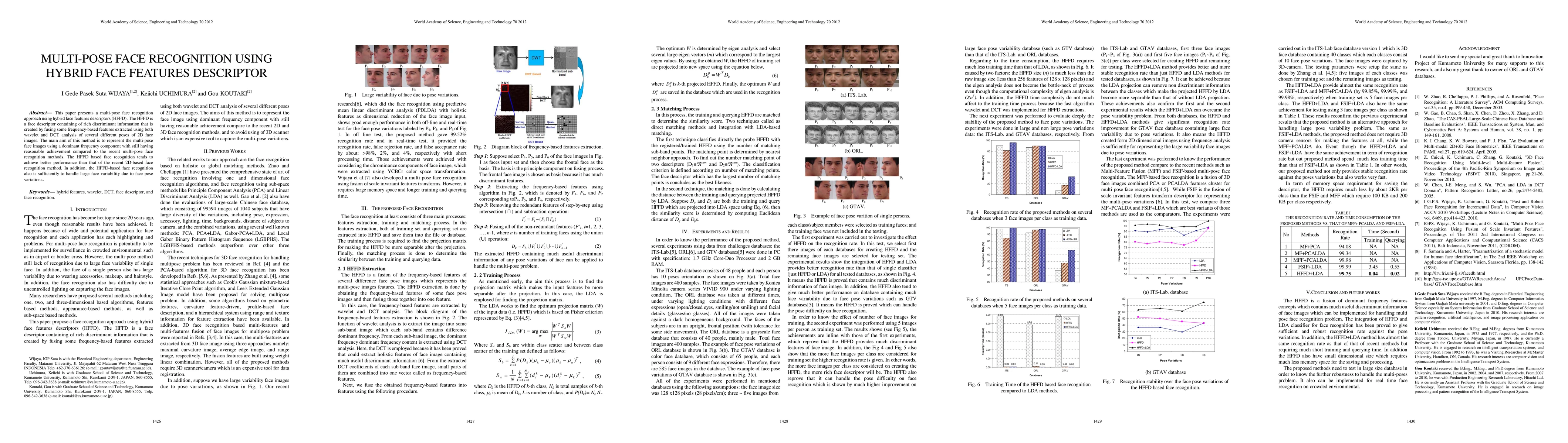 This paper proposes a multi-pose face recognition method using hybrid face features descriptors (HFFD) that combine wavelet and DCT analysis for robust representation. The HFFD-based approach demonstrates superior performance and effectively handles large pose variations compared to recent 2D-based methods.