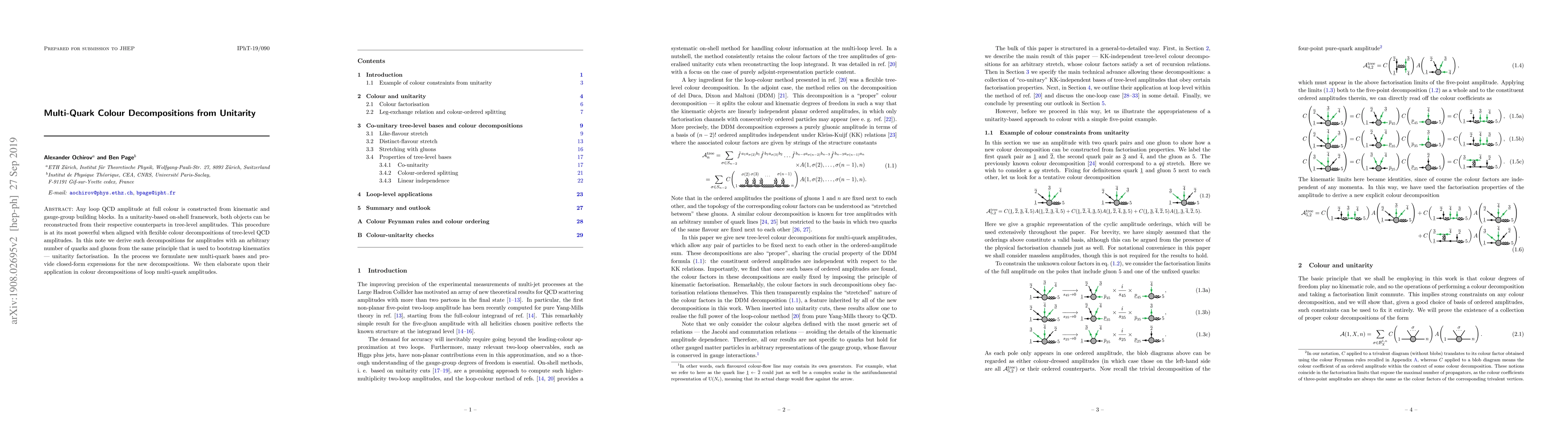 Any loop QCD amplitude at full colour is constructed from kinematic and gauge-group building blocks. In a unitarity-based on-shell framework, both objects can be reconstructed from their respective counterparts in tree-level amplitudes. This procedure is at its most powerful when aligned with flexible colour decompositions of tree-level QCD amplitudes. In this note we derive such decompositions for amplitudes with an arbitrary number of quarks and gluons from the same principle that is used to bootstrap kinematics - unitarity factorisation. In the process we formulate new multi-quark bases and provide closed-form expressions for the new decompositions. We then elaborate upon their application in colour decompositions of loop multi-quark amplitudes.
