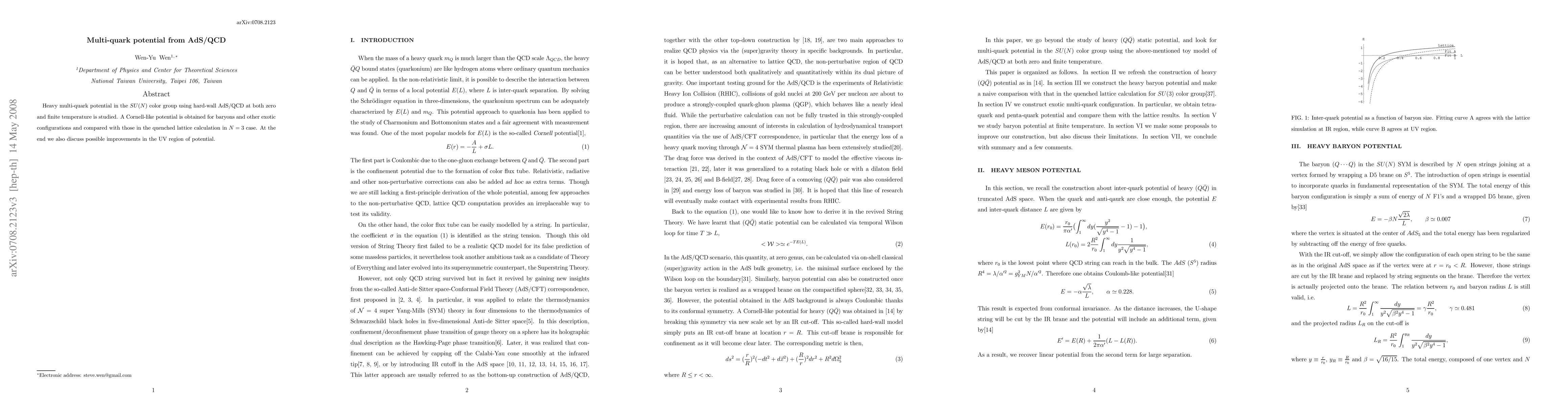 This paper investigates the heavy multi-quark potential in the SU(N) color group using the hard-wall AdS/QCD model at both zero and finite temperatures. It derives a Cornell-like potential for baryons and exotic configurations and compares these results with quenched lattice calculations, while also discussing potential improvements in the ultraviolet region.