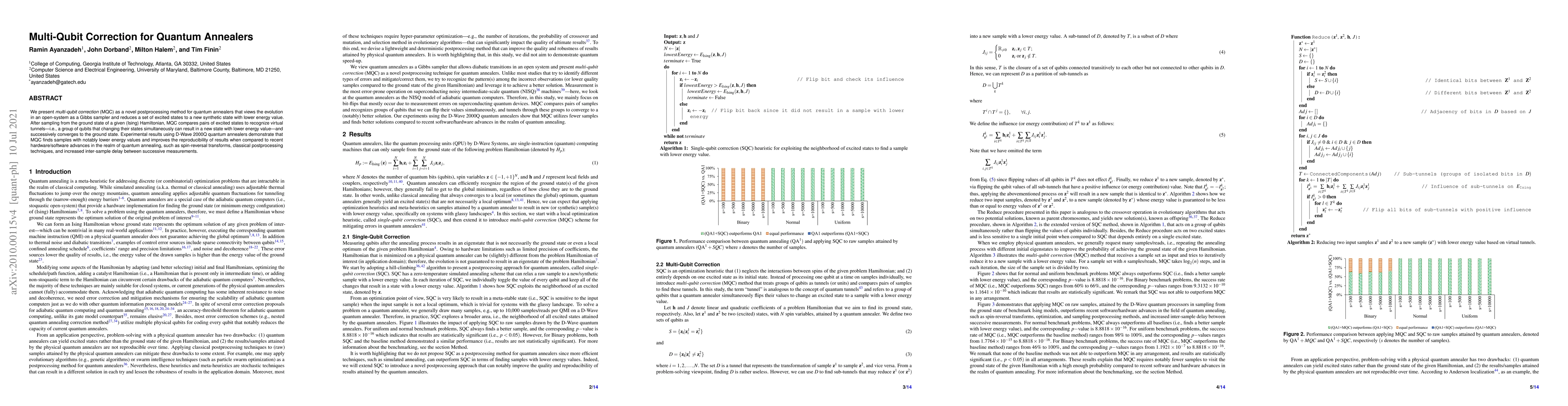 We present \emph{multi-qubit correction} (MQC) as a novel postprocessing method for quantum annealers that views the evolution in an open-system as a Gibbs sampler and reduces a set of excited states to a new synthetic state with lower energy value. After sampling from the ground state of a given (Ising) Hamiltonian, MQC compares pairs of excited states to recognize virtual tunnels--i.e., a group of qubits that changing their states simultaneously can result in a new state with lower energy value--and successively converges to the ground state. Experimental results using D-Wave 2000Q quantum annealers demonstrate that MQC finds samples with notably lower energy values and improves the reproducibility of results when compared to recent hardware/software advances in the realm of quantum annealing, such as spin-reversal transforms, classical postprocessing techniques, and increased inter-sample delay between successive measurements.