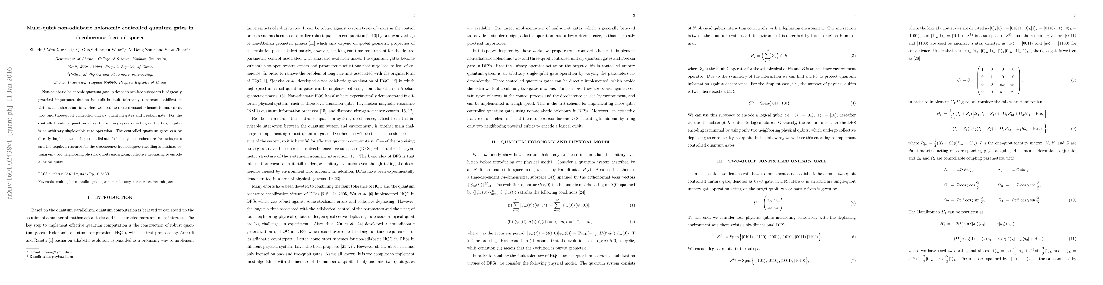 This paper proposes compact schemes for implementing multi-qubit non-adiabatic holonomic controlled quantum gates in decoherence-free subspaces, leveraging their inherent fault tolerance and coherence stabilization. The proposed methods achieve two- and three-qubit controlled unitary gates and Fredkin gates using minimal resources, relying on collective dephasing of neighboring qubits.