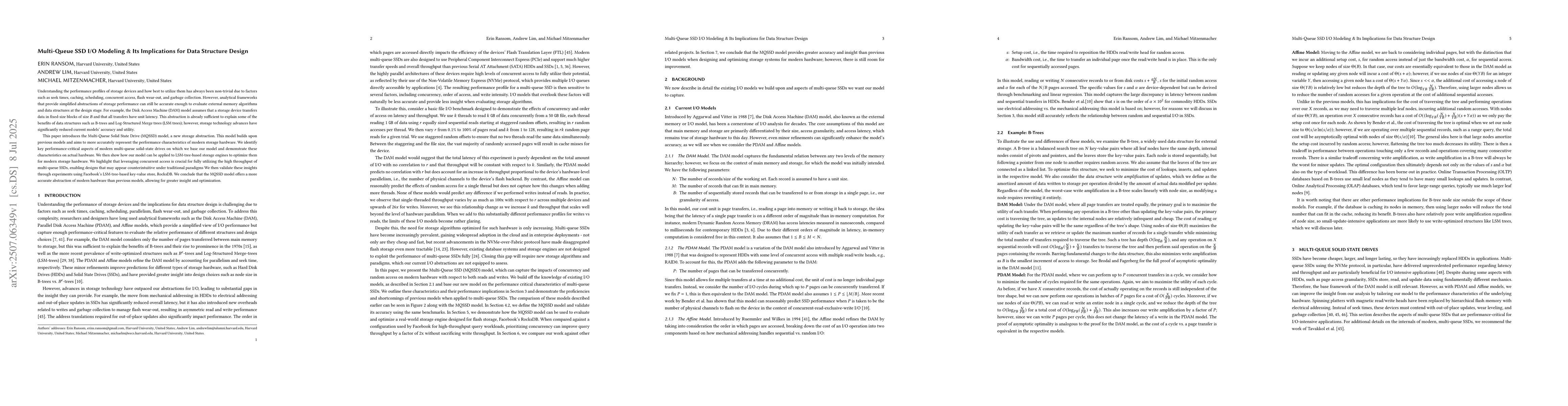 Understanding the performance profiles of storage devices and how best to utilize them has always been non-trivial due to factors such as seek times, caching, scheduling, concurrent access, flash wear-out, and garbage collection. However, analytical frameworks that provide simplified abstractions of storage performance can still be accurate enough to evaluate external memory algorithms and data structures at the design stage. For example, the Disk Access Machine (DAM) model assumes that a storage device transfers data in fixed-size blocks of size B and that all transfers have unit latency. This abstraction is already sufficient to explain some of the benefits of data structures such as B-trees and Log-Structured Merge trees (LSM trees); however, storage technology advances have significantly reduced current models' accuracy and utility. This paper introduces the Multi-Queue Solid State Drive (MQSSD) model, a new storage abstraction. This model builds upon previous models and aims to more accurately represent the performance characteristics of modern storage hardware. We identify key performance-critical aspects of modern multi-queue solid-state drives on which we base our model and demonstrate these characteristics on actual hardware. We then show how our model can be applied to LSM-tree-based storage engines to optimize them for modern storage hardware. We highlight that leveraging concurrent access is crucial for fully utilizing the high throughput of multi-queue SSDs, enabling designs that may appear counterintuitive under traditional paradigms We then validate these insights through experiments using Facebook's LSM-tree-based key-value store, RocksDB. We conclude that the MQSSD model offers a more accurate abstraction of modern hardware than previous models, allowing for greater insight and optimization.