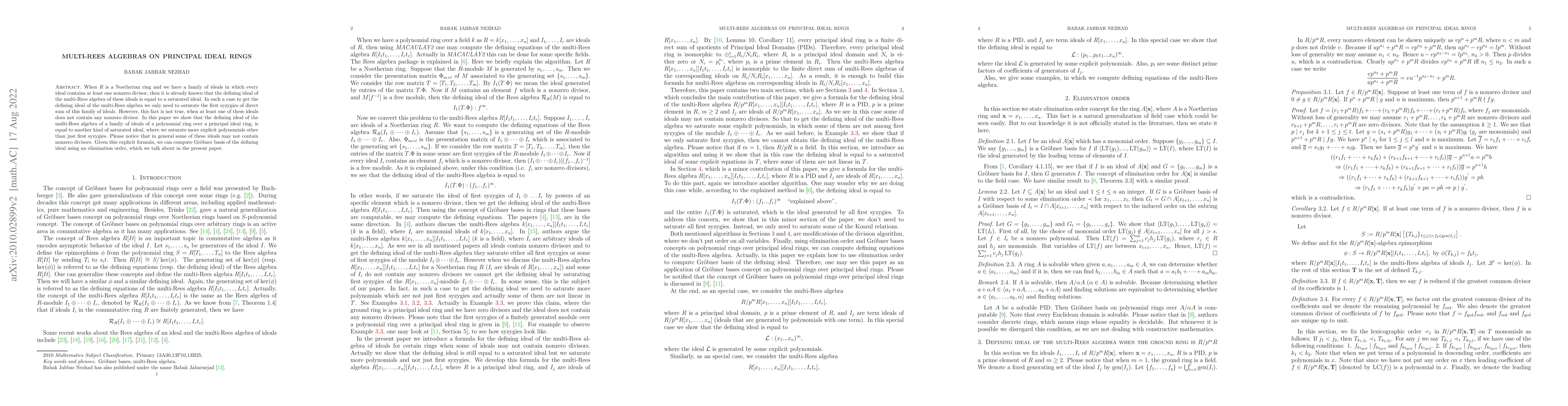 This paper investigates the defining ideal of multi-Rees algebras over principal ideal rings, revealing that when some ideals lack nonzero divisors, the defining ideal is a different type of saturated ideal, requiring saturation of more explicit polynomials beyond first syzygies. It also discusses computing the Gröbner basis using an elimination order.