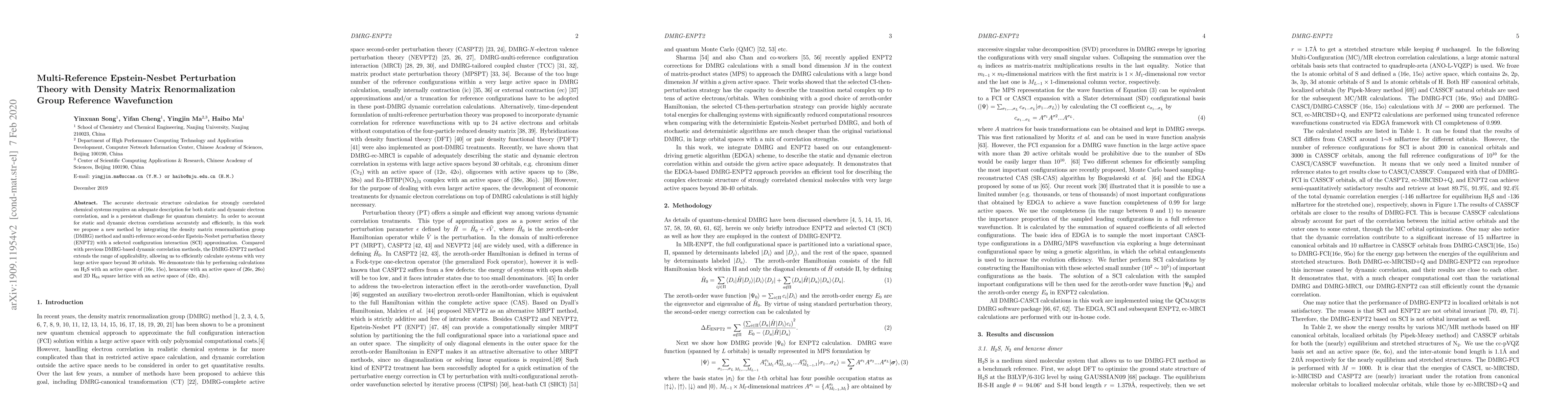 This paper proposes a new method integrating the density matrix renormalization group (DMRG) with multi-reference second-order Epstein-Nesbet perturbation theory (ENPT2) for accurate electronic structure calculations in strongly correlated systems. The DMRG-ENPT2 method extends applicability to large active spaces, demonstrated through calculations on complex molecules like H$_2$S, hexacene, and a 2D H$_{64}$ lattice.