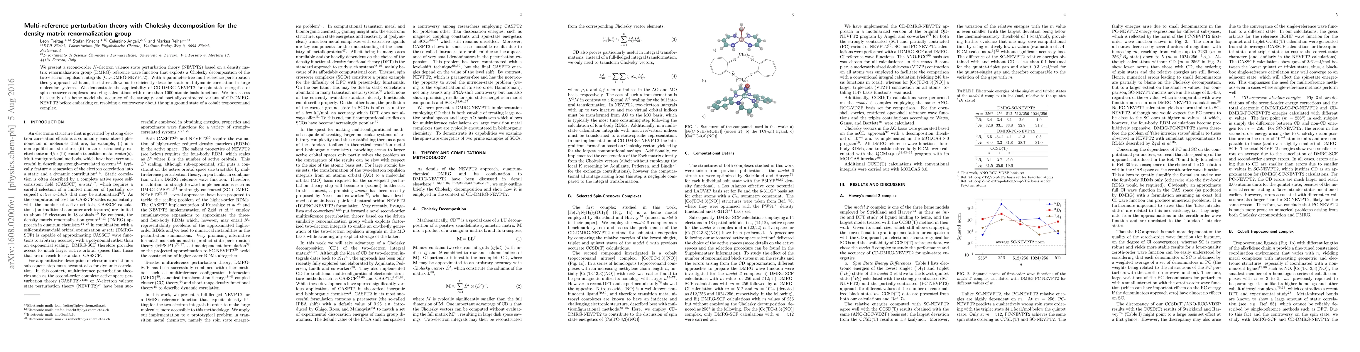 This paper introduces a second-order perturbation theory (NEVPT2) based on DMRG and Cholesky decomposition for large molecular systems, demonstrating its accuracy and efficiency in spin-state energetics of spin-crossover complexes. The method resolves a controversy regarding the spin ground state of a cobalt complex.