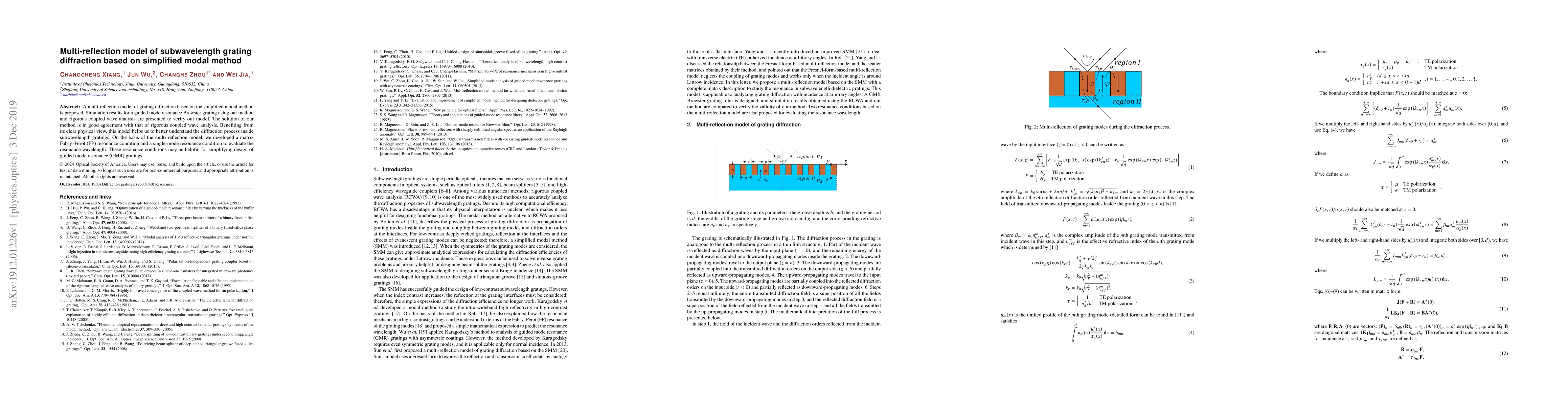 This paper proposes a multi-reflection model for subwavelength grating diffraction based on the simplified modal method, demonstrating good agreement with rigorous coupled wave analysis. The model aids in understanding the diffraction process and introduces matrix Fabry-Pérot and single-mode resonance conditions to simplify the design of guided mode resonance gratings.