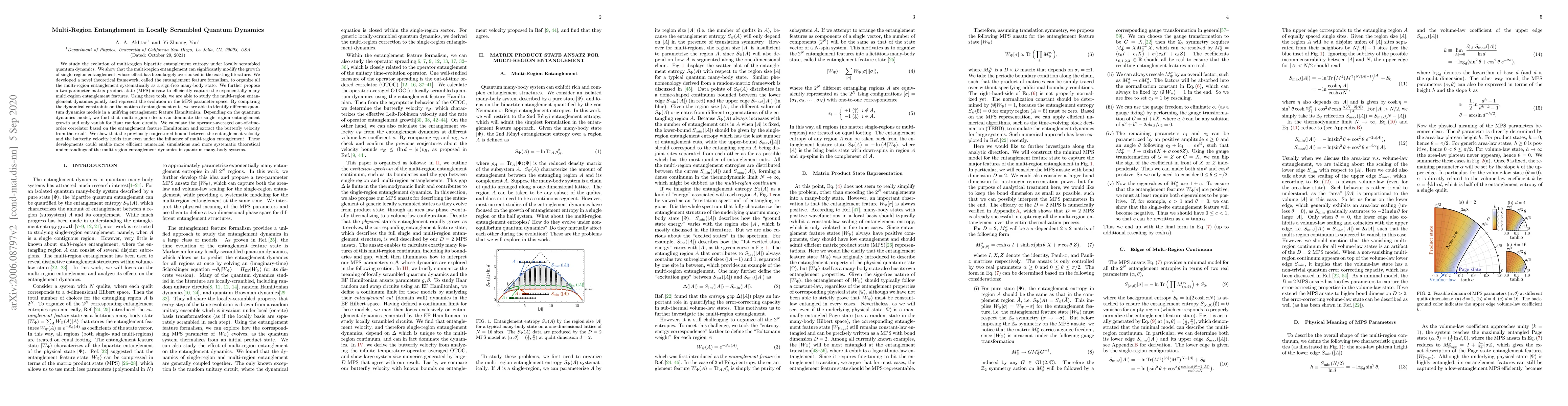 This paper investigates the impact of multi-region entanglement on the evolution of single-region entanglement under locally scrambled quantum dynamics, introducing a new theoretical framework and matrix product state ansatz to systematically study these dynamics. It reveals that multi-region entanglement can significantly influence the growth of single-region entanglement, with implications for understanding quantum many-body systems and numerical simulations.