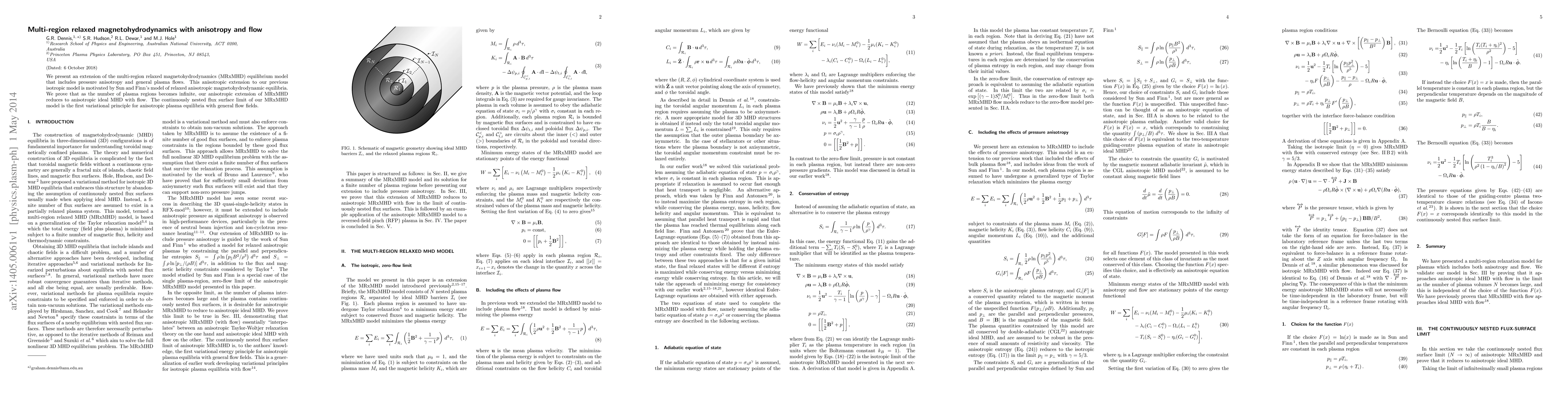 This paper extends the multi-region relaxed magnetohydrodynamics (MRxMHD) model to include pressure anisotropy and general plasma flows, proving its convergence to anisotropic ideal MHD with flow. The model provides a first variational principle for anisotropic plasma equilibria with flow.