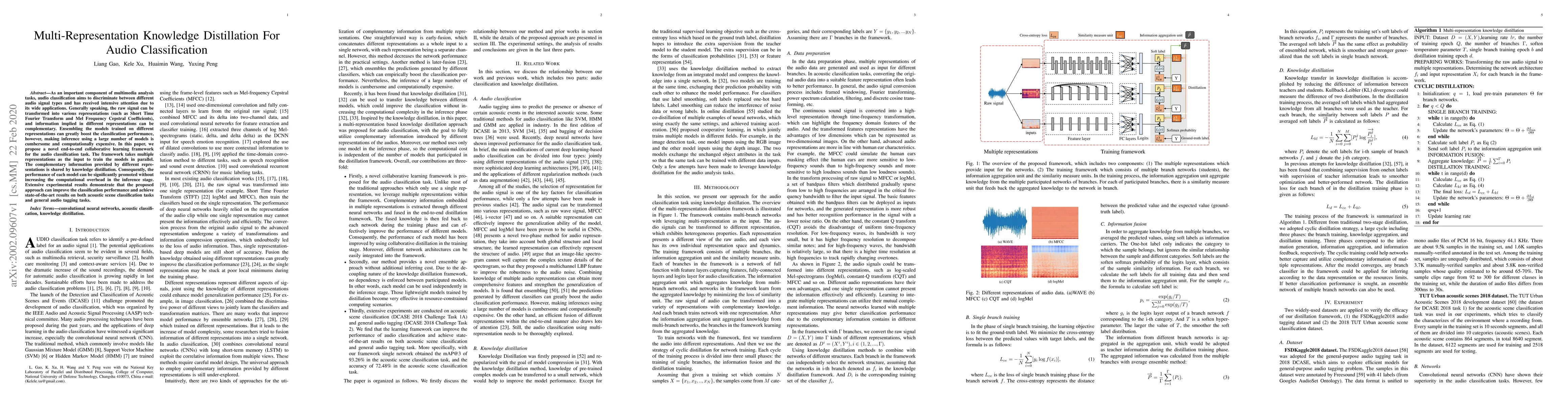 This paper proposes a collaborative learning framework for audio classification using multi-representation knowledge distillation, which enhances model performance by sharing complementary information across different representations without increasing inference costs. The approach achieves state-of-the-art results in both acoustic scene and general audio tagging tasks.