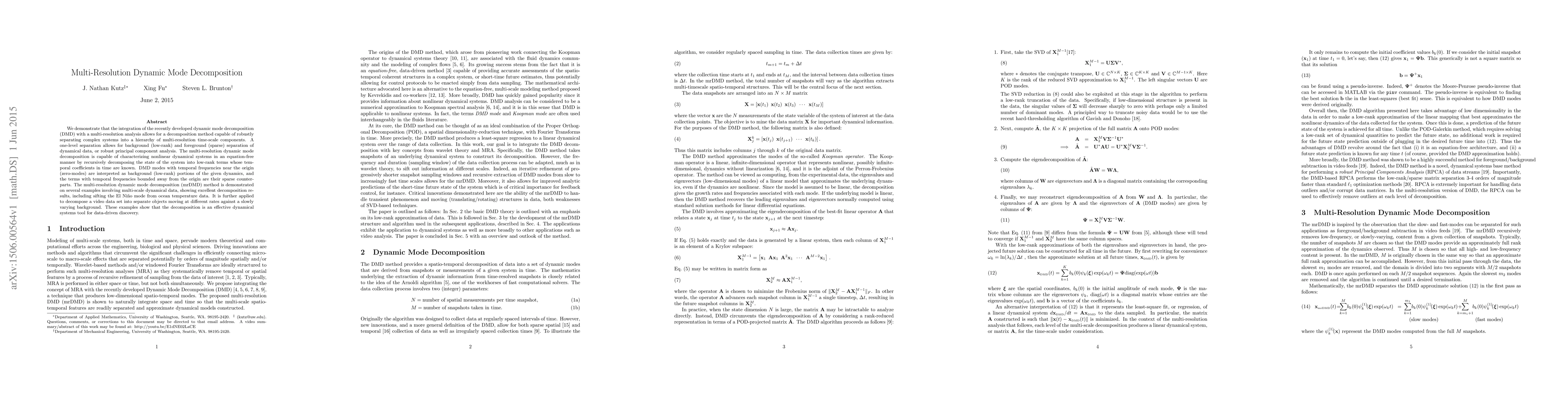 The paper introduces a multi-resolution dynamic mode decomposition (mrDMD) that integrates dynamic mode decomposition with multi-resolution analysis to robustly separate complex systems into hierarchical time-scale components, demonstrating effective decomposition of multi-scale dynamical data and video data.