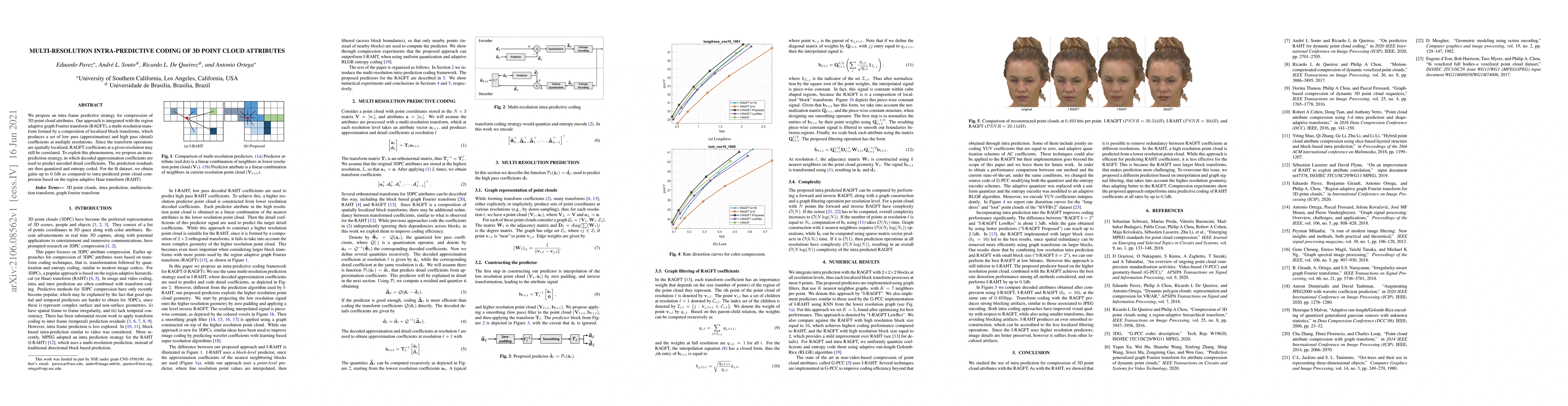 We propose an intra frame predictive strategy for compression of 3D point cloud attributes. Our approach is integrated with the region adaptive graph Fourier transform (RAGFT), a multi-resolution transform formed by a composition of localized block transforms, which produces a set of low pass (approximation) and high pass (detail) coefficients at multiple resolutions. Since the transform operations are spatially localized, RAGFT coefficients at a given resolution may still be correlated. To exploit this phenomenon, we propose an intra-prediction strategy, in which decoded approximation coefficients are used to predict uncoded detail coefficients. The prediction residuals are then quantized and entropy coded. For the 8i dataset, we obtain gains up to 0.5db as compared to intra predicted point cloud compresion based on the region adaptive Haar transform (RAHT).