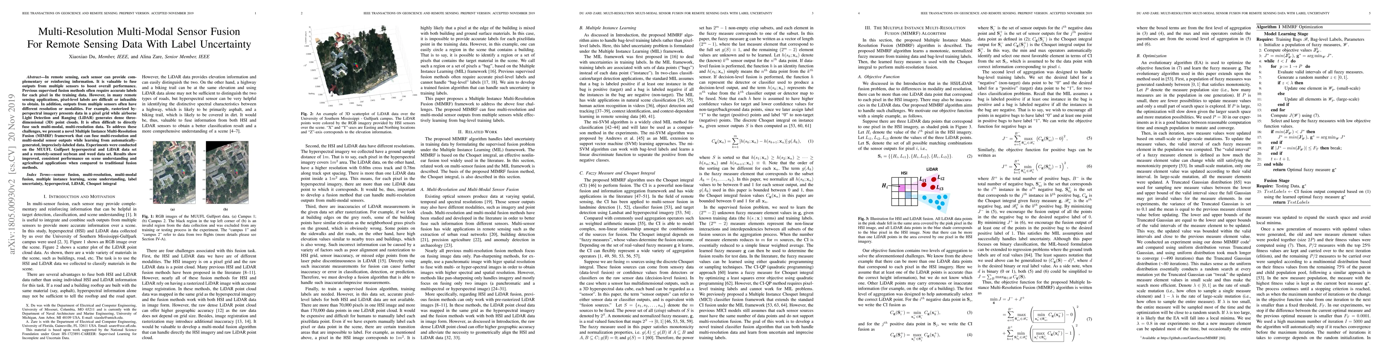 This paper presents a novel MIMRF framework for multi-resolution and multi-modal sensor fusion in remote sensing, addressing label uncertainty and data modality differences. Experiments demonstrate improved performance in scene understanding and agricultural applications compared to traditional fusion methods.