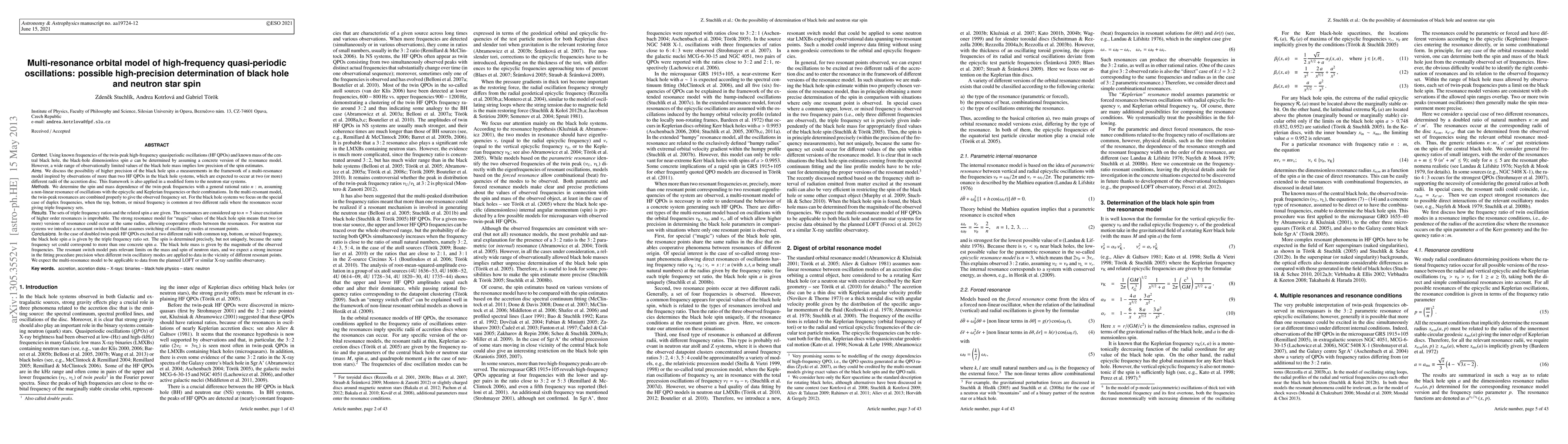 This paper proposes a multi-resonance orbital model to determine high-precision black hole spin using high-frequency quasi-periodic oscillations (HF QPOs). It suggests that observing more than two HF QPOs can improve spin estimates, especially with triple frequency sets, and introduces a resonant switch model for neutron stars to enhance precision in mass and spin determination.