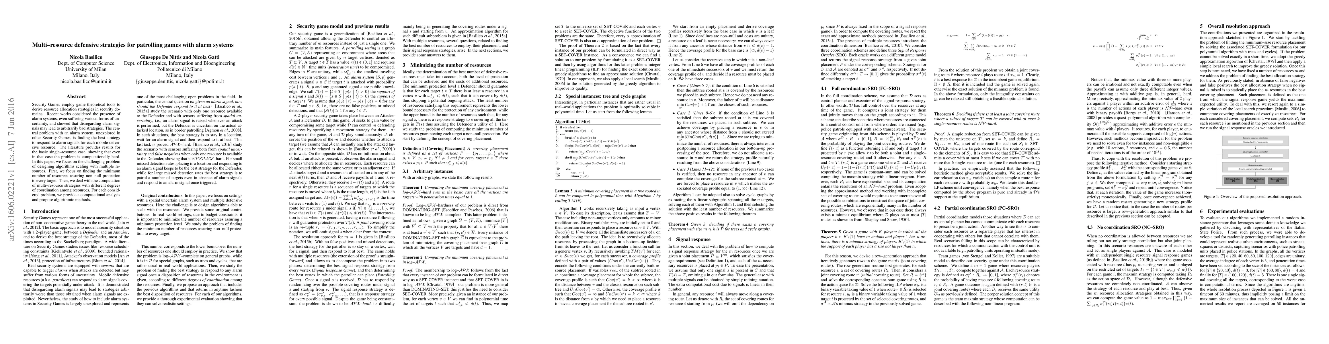 Researchers investigated how to effectively use multiple defensive resources in security games with alarm systems, finding that non-null protection can be achieved with a minimal number of resources. They developed algorithms for computing multi-resource strategies with different degrees of coordination among resources.
