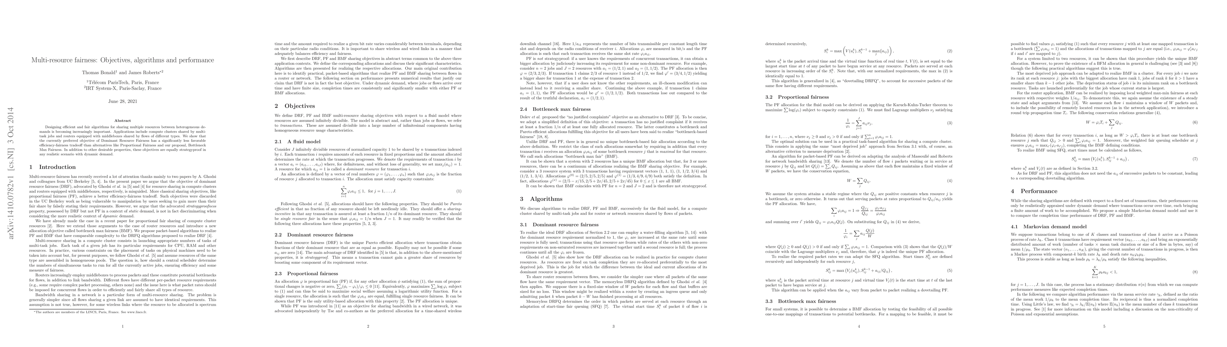 This paper explores efficient and fair algorithms for sharing multiple resources among diverse demands, highlighting that Dominant Resource Fairness is less optimal than alternatives like Proportional Fairness and the proposed Bottleneck Max Fairness, which also exhibit strategyproofness in dynamic demand scenarios.