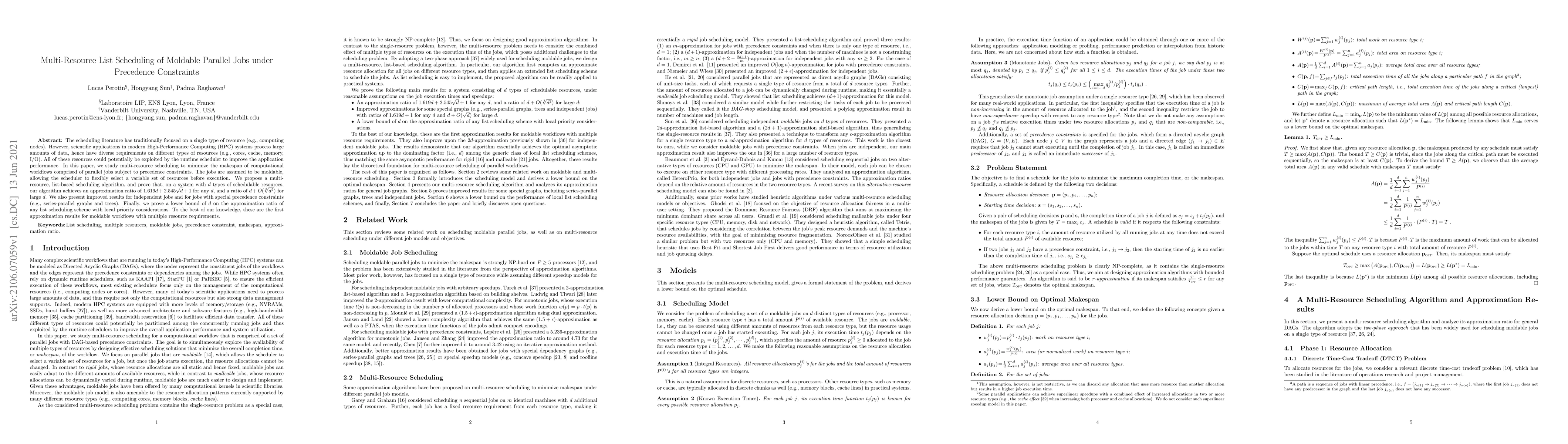This paper proposes a multi-resource list-based scheduling algorithm to minimize the makespan for moldable parallel jobs with precedence constraints in HPC systems. The algorithm achieves an approximation ratio of $1.619d+2.545\sqrt{d}+1$ for any number of resource types, and improved results for independent jobs and specific precedence constraints.