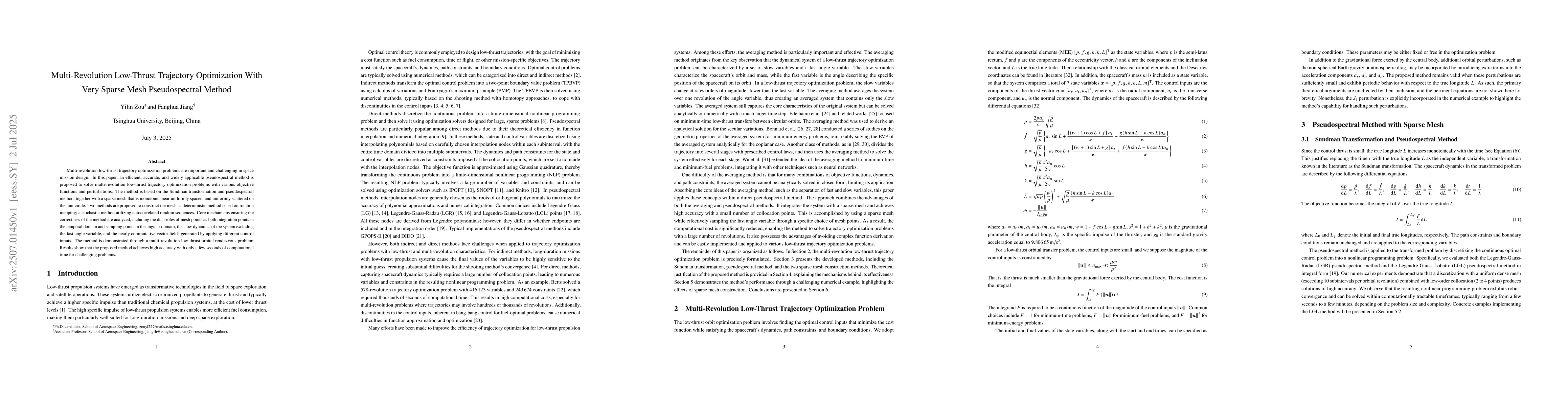 Multi-revolution low-thrust trajectory optimization problems are important and challenging in space mission design. In this paper, an efficient, accurate, and widely applicable pseudospectral method is proposed to solve multi-revolution low-thrust trajectory optimization problems with various objective functions and perturbations. The method is based on the Sundman transformation and pseudospectral method, together with a sparse mesh that is monotonic, near-uniformly spaced, and uniformly scattered on the unit circle. Two methods are proposed to construct the mesh: a deterministic method based on rotation mapping; a stochastic method utilizing autocorrelated random sequences. Core mechanisms ensuring the correctness of the method are analyzed, including the dual roles of mesh points as both integration points in the temporal domain and sampling points in the angular domain, the slow dynamics of the system excluding the fast angle variable, and the nearly commutative vector fields generated by applying different control inputs. The method is demonstrated through a multi-revolution low-thrust orbital rendezvous problem. Results show that the proposed method achieves high accuracy with only a few seconds of computational time for challenging problems.