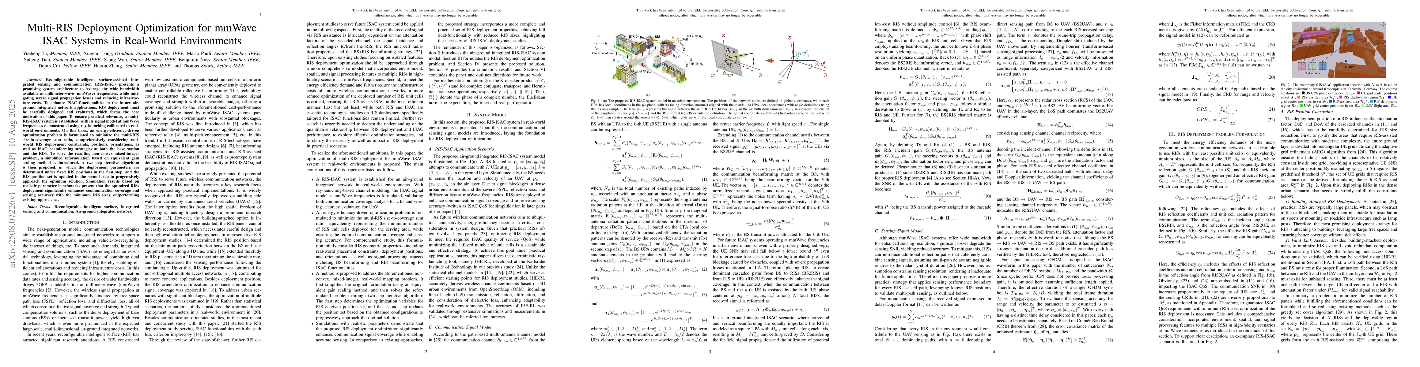 Reconfigurable intelligent surface-assisted integrated sensing and communication (RIS-ISAC) presents a promising system architecture to leverage the wide bandwidth available at millimeter-wave (mmWave) frequencies, while mitigating severe signal propagation losses and reducing infrastructure costs. To enhance ISAC functionalities in the future air-ground integrated network applications, RIS deployment must be carefully designed and evaluated, which forms the core motivation of this paper. To ensure practical relevance, a multi-RIS-ISAC system is established, with its signal model at mmWave frequencies demonstrated using ray-launching calibrated to real-world environments. On this basis, an energy-efficiency-driven optimization problem is formulated to minimize the multi-RIS size-to-coverage sum ratio, comprehensively considering real-world RIS deployment constraints, positions, orientations, as well as ISAC beamforming strategies at both the base station and the RISs. To solve the resulting non-convex mixed-integer problem, a simplified reformulation based on equivalent gain scaling method is introduced. A two-step iterative algorithm is then proposed, in which the deployment parameters are determined under fixed RIS positions in the first step, and the RIS position set is updated in the second step to progressively approach the optimum solution. Simulation results based on realistic parameter benchmarks present that the optimized RISs deployment significantly enhances communication coverage and sensing accuracy with the minimum RIS sizes, outperforming existing approaches.