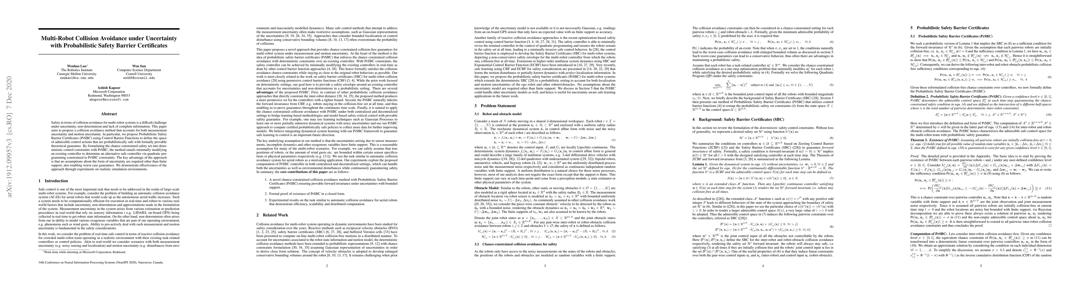 A probabilistic approach was used to derive a set of linear constraints that ensure inter-robot collision avoidance.