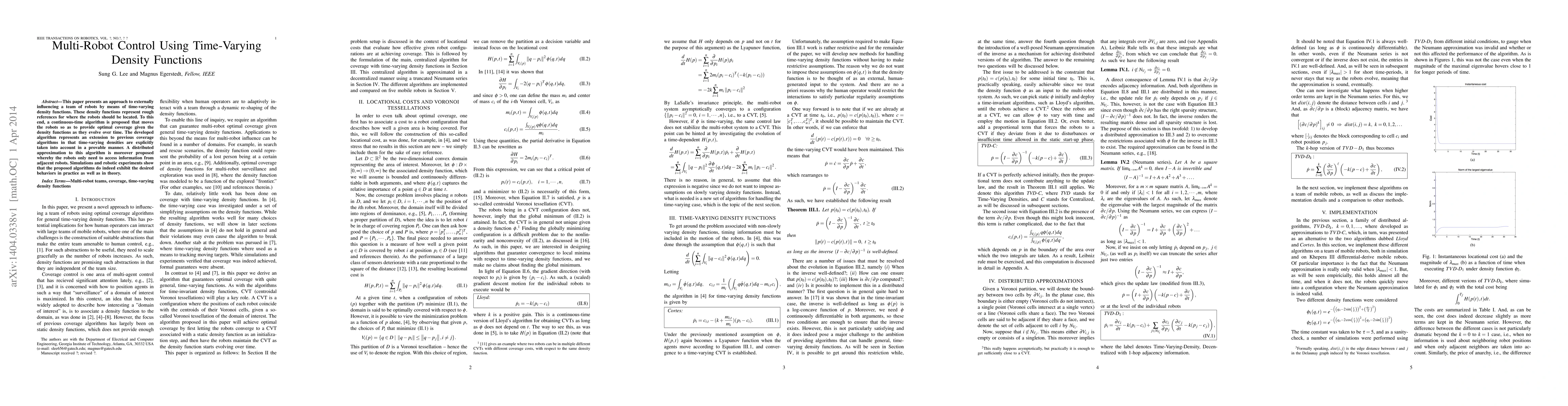This paper presents an approach to externally influencing a team of robots by means of time-varying density functions. These density functions represent rough references for where the robots should be located. To this end, a continuous-time algorithm is proposed that moves the robots so as to provide optimal coverage given the density functions as they evolve over time. The developed algorithm represents an extension to previous coverage algorithms in that time-varying densities are explicitly taken into account in a provable manner. A distributed approximation to this algorithm is moreover proposed whereby the robots only need to access information from adjacent robots. Simulations and robotic experiments show that the proposed algorithms do indeed exhibit the desired behaviors in practice as well as in theory.