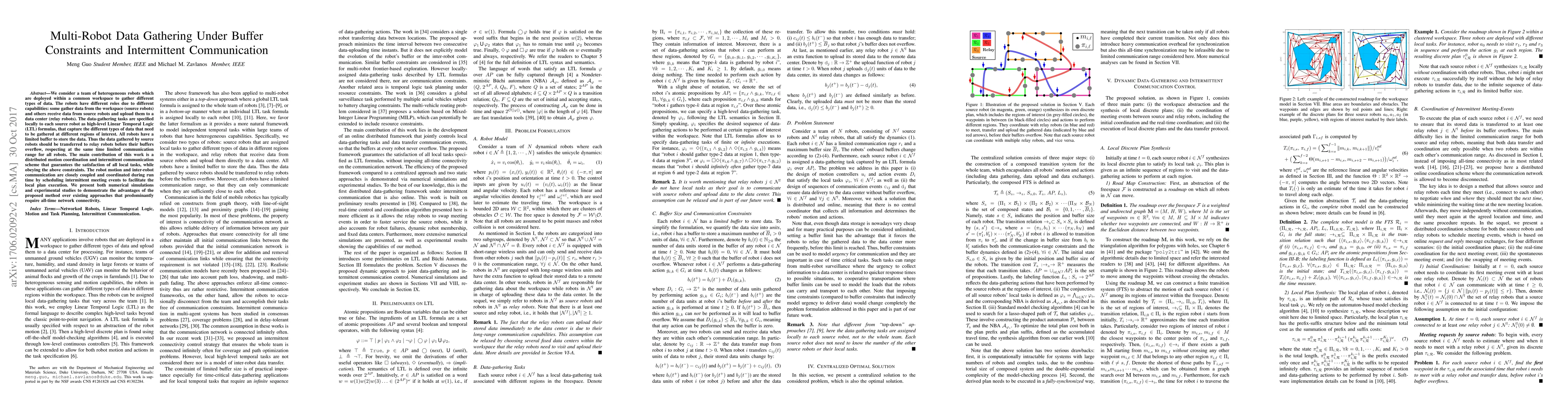 Researchers developed a distributed motion coordination scheme for heterogeneous robots with limited buffers to gather data under intermittent communication constraints. The approach guarantees task satisfaction while respecting buffer overflow and communication range limitations.