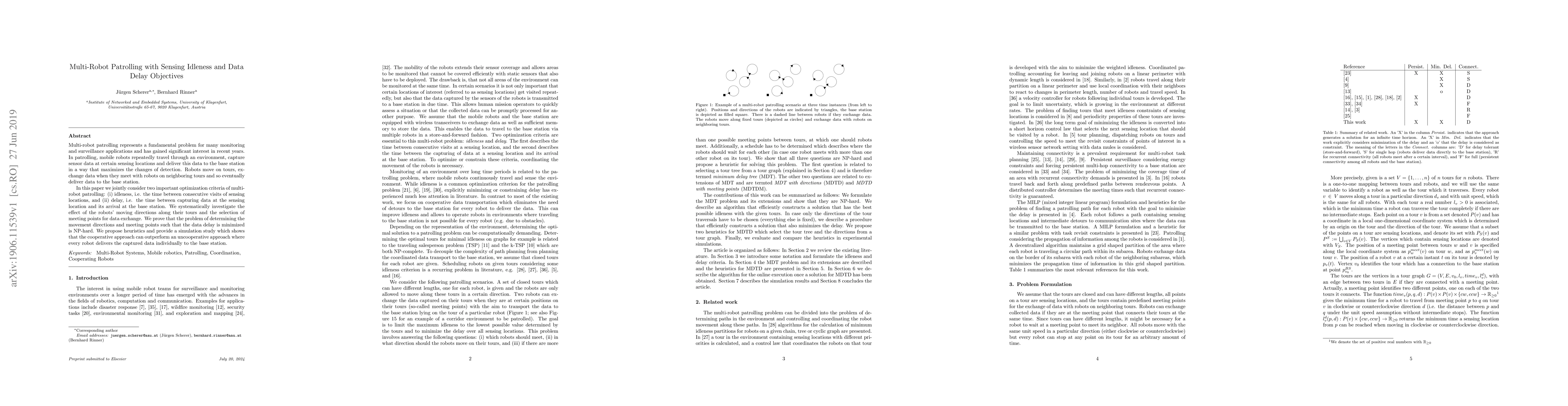 This paper explores multi-robot patrolling strategies to optimize sensing idleness and data delay in monitoring applications. It proves the problem of minimizing data delay through optimal movement directions and data exchange points is NP-hard and proposes heuristics, demonstrating cooperative data exchange can outperform individual data delivery.