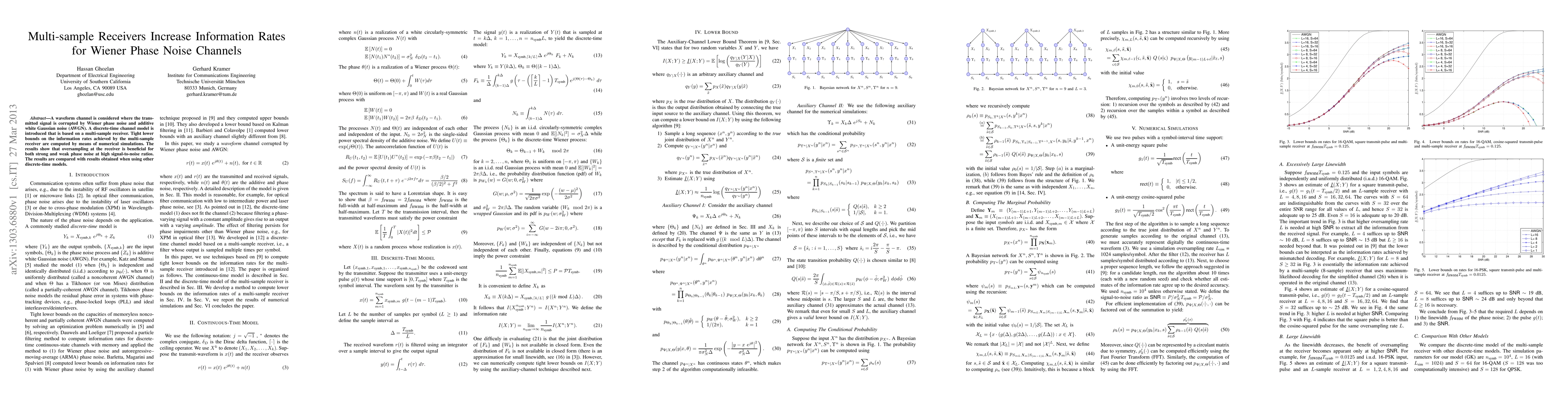 This paper investigates a multi-sample receiver for a channel corrupted by Wiener phase noise and additive white Gaussian noise, demonstrating that oversampling enhances information rates, especially at high signal-to-noise ratios. Numerical simulations reveal the benefits of this approach compared to other discrete-time models.