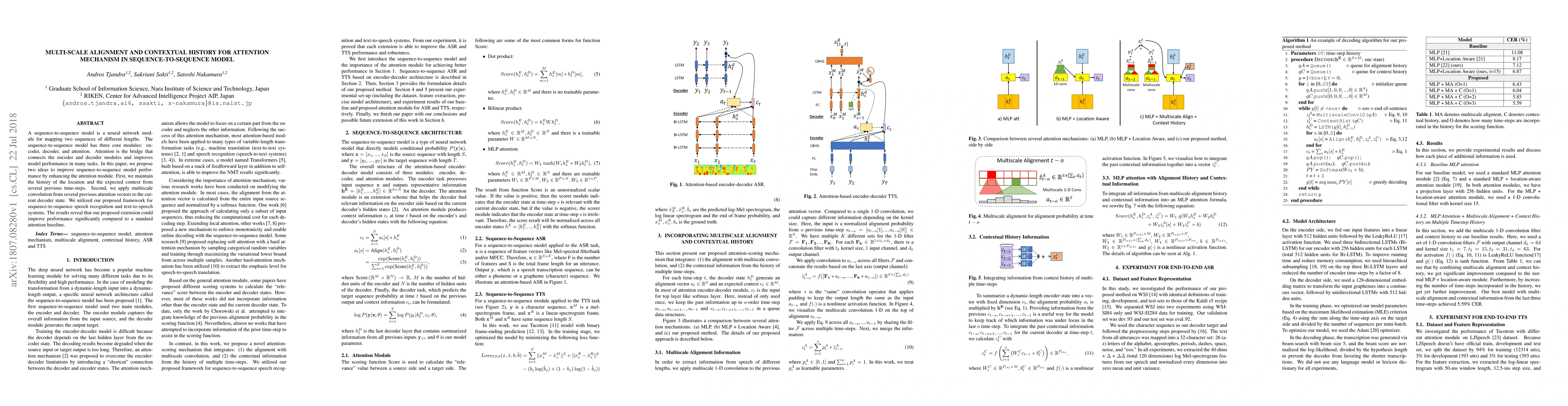 This paper proposes enhancements to the attention mechanism in sequence-to-sequence models by maintaining contextual history and applying multiscale convolution, which significantly improve performance in speech recognition and text-to-speech tasks.
