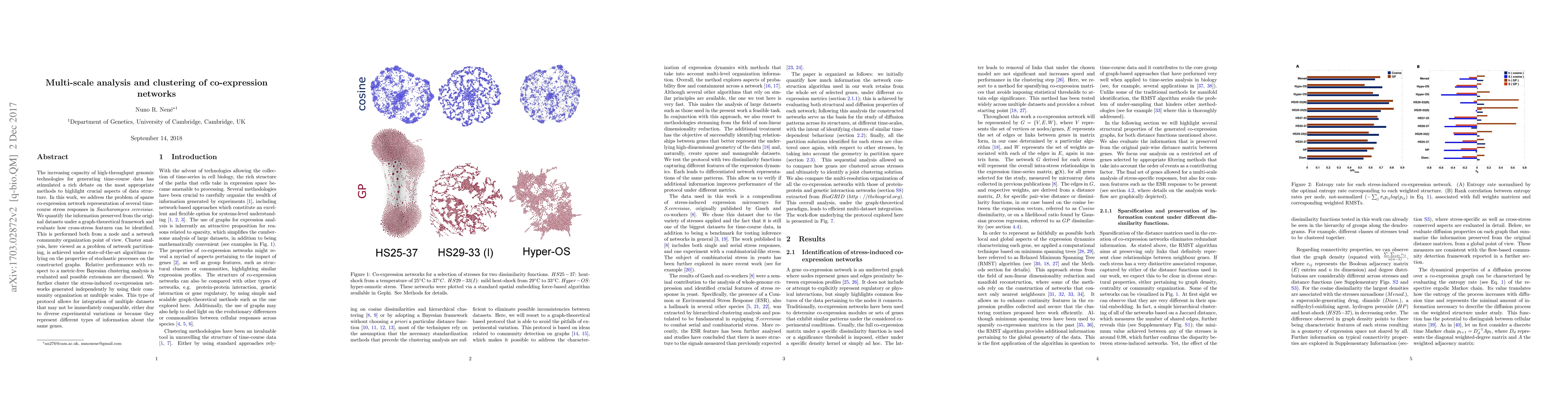 This paper explores multi-scale clustering of co-expression networks from time-course stress responses in yeast, employing graph-theoretical frameworks to quantify information preservation. It evaluates network partitioning using advanced stochastic process algorithms and discusses potential extensions for integrating diverse experimental datasets.