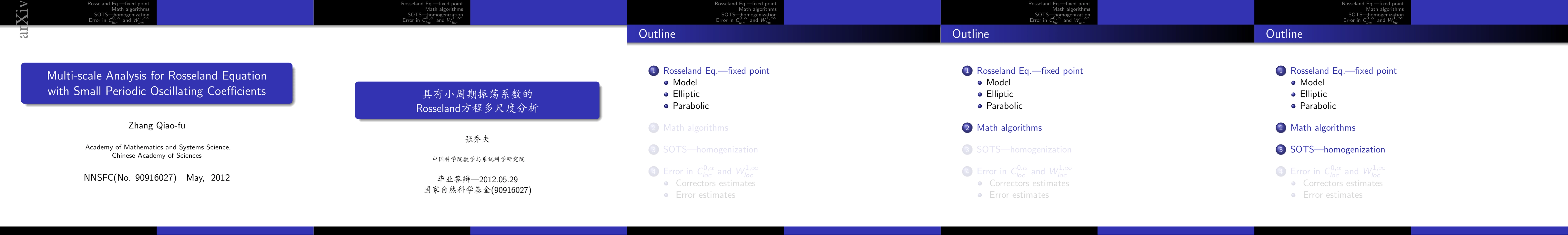 Rosseland equation is one of the most popular models of the conduction-radiation coupled heat transfer in the thermal protection system. The well-posedness, the corresponding mathematical theory and the Multi-scale analysis method for the Rosseland-type equations with small periodic oscillating coefficients are concerned, which provides a theoretical basis for the Multi-scale computation of the conduction-radiation coupled heat transfer in an optically thick medium with a small periodic structure. The global well-posedness of the Rosseland-type (parabolic) equations is given in the first part. The corresponding solving algorithms and their convergence analysis are presented in the second part. In the third part we study the well-posedness and the second-order two-scale asymptotic expansion of the Rosseland-type (elliptic) equations with small periodic oscillating coefficients. The convergence analysis of the second-order two-scale asymptotic expansion is studied in the last part.