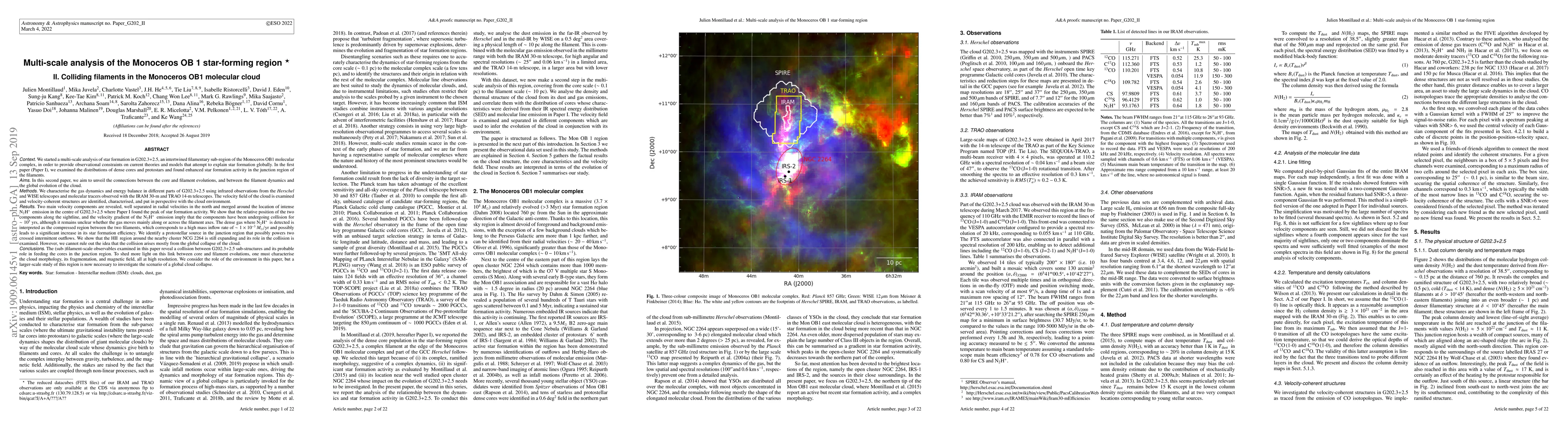 This paper explores the dynamics and energy balance of the Monoceros OB1 molecular cloud, focusing on the colliding filaments in G202.3+2.5. It reveals two main velocity components undergoing collision, likely enhancing star formation efficiency in the dense gas region.