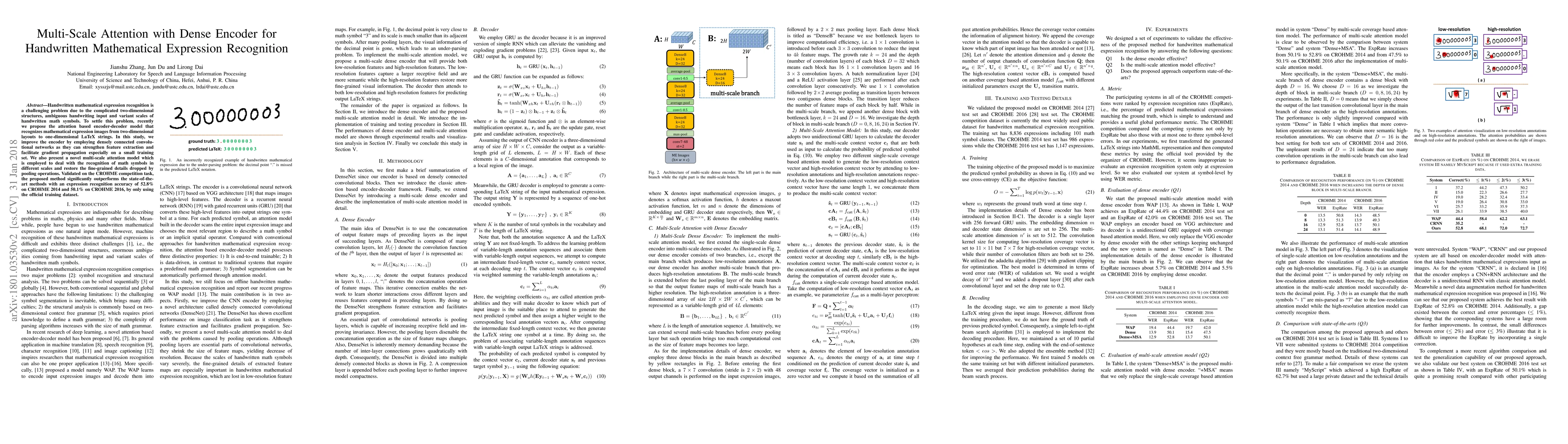 This paper proposes a multi-scale attention-based encoder-decoder model for recognizing handwritten mathematical expressions, utilizing densely connected convolutional networks to enhance feature extraction. The multi-scale attention model addresses symbols of varying scales and preserves fine-grained details, achieving superior performance on CROHME datasets.