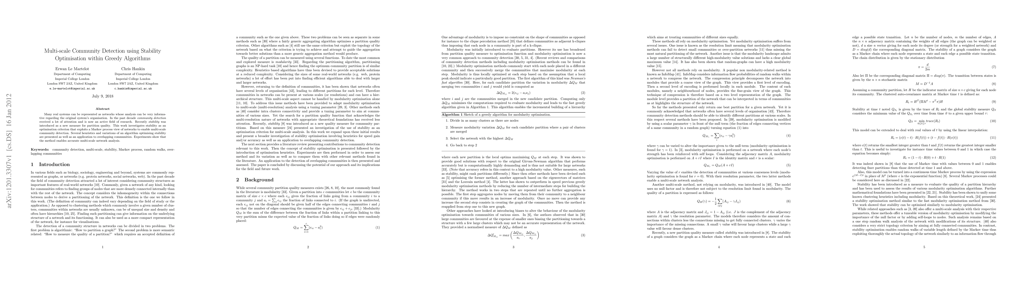This paper proposes stability optimisation within greedy algorithms for multi-scale community detection in networks, leveraging a Markov process view. The method is tested on overlapping communities, demonstrating accurate multi-scale network analysis.