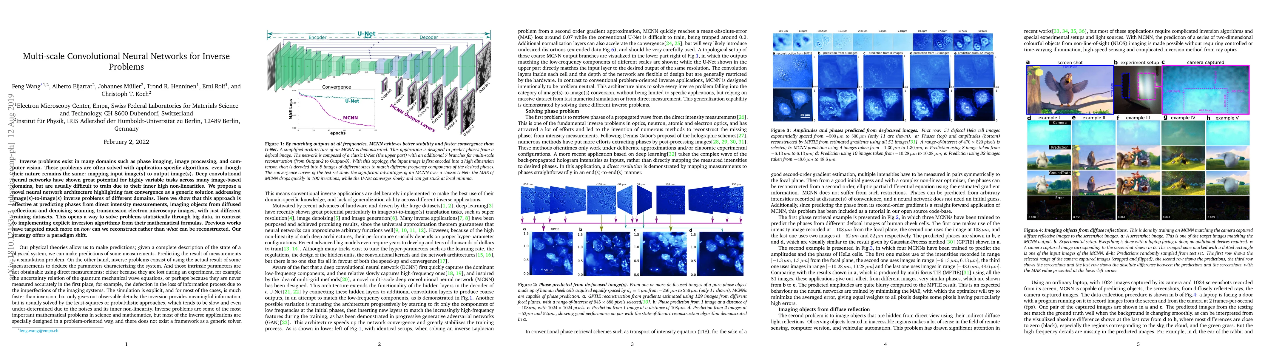 This paper proposes a multi-scale convolutional neural network architecture for solving inverse problems across various domains, emphasizing fast convergence and general applicability. The approach demonstrates effectiveness in phase imaging, object reconstruction, and denoising, showcasing a shift from traditional explicit inversion algorithms to data-driven solutions.