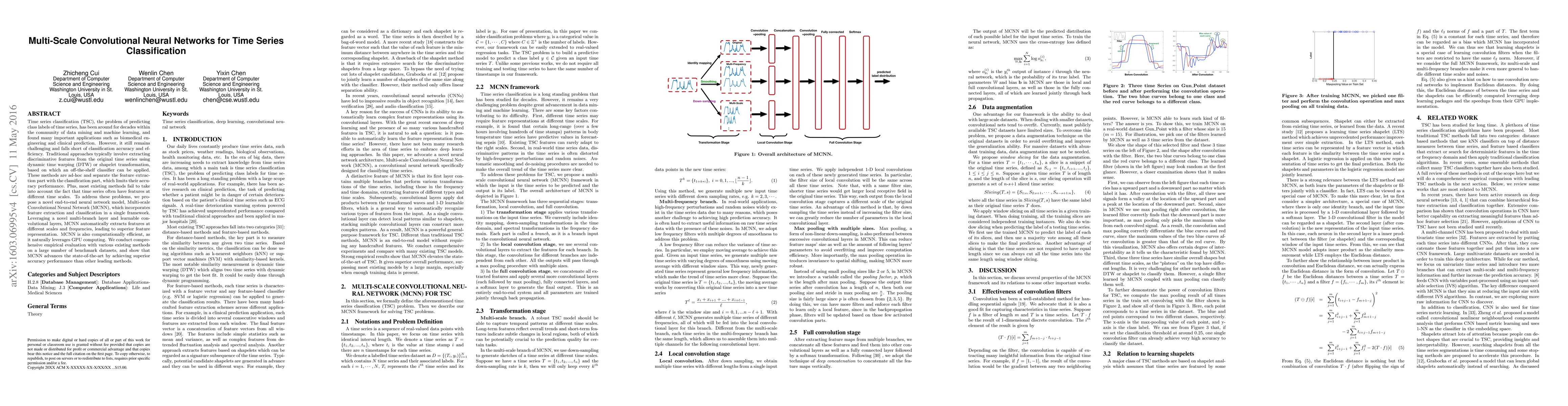 The paper proposes Multi-Scale Convolutional Neural Networks (MCNN) for time series classification, integrating feature extraction and classification into a single framework. MCNN achieves superior accuracy by automatically extracting features at different scales and frequencies, outperforming existing methods on benchmark datasets.
