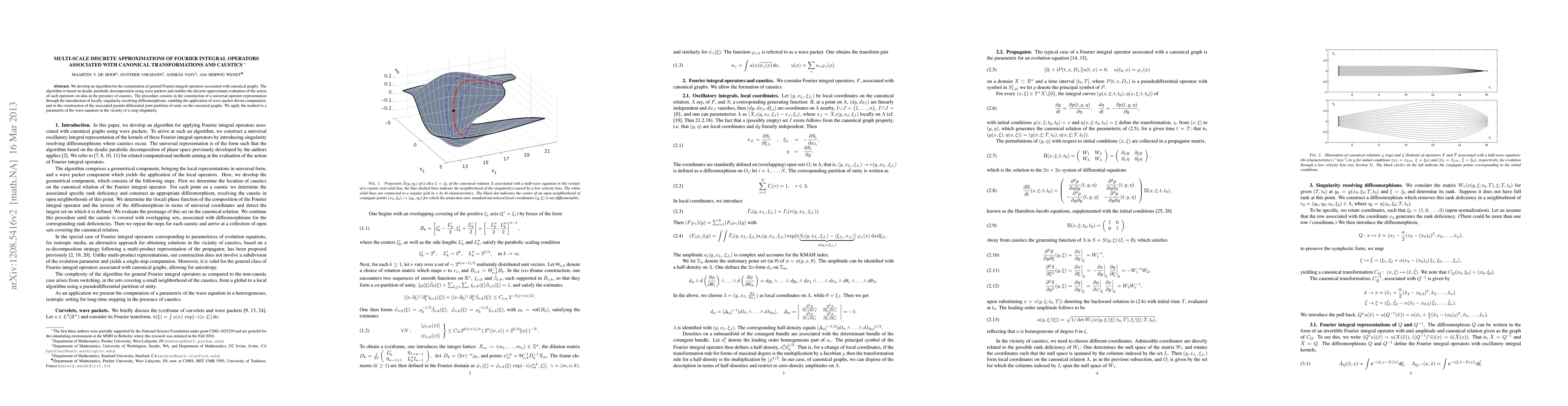 We develop an algorithm for the computation of general Fourier integral operators associated with canonical graphs. The algorithm is based on dyadic parabolic decomposition using wave packets and enables the discrete approximate evaluation of the action of such operators on data in the presence of caustics. The procedure consists in the construction of a universal operator representation through the introduction of locally singularity-resolving diffeomorphisms, enabling the application of wave packet driven computation, and in the construction of the associated pseudo-differential joint-partition of unity on the canonical graphs. We apply the method to a parametrix of the wave equation in the vicinity of a cusp singularity.